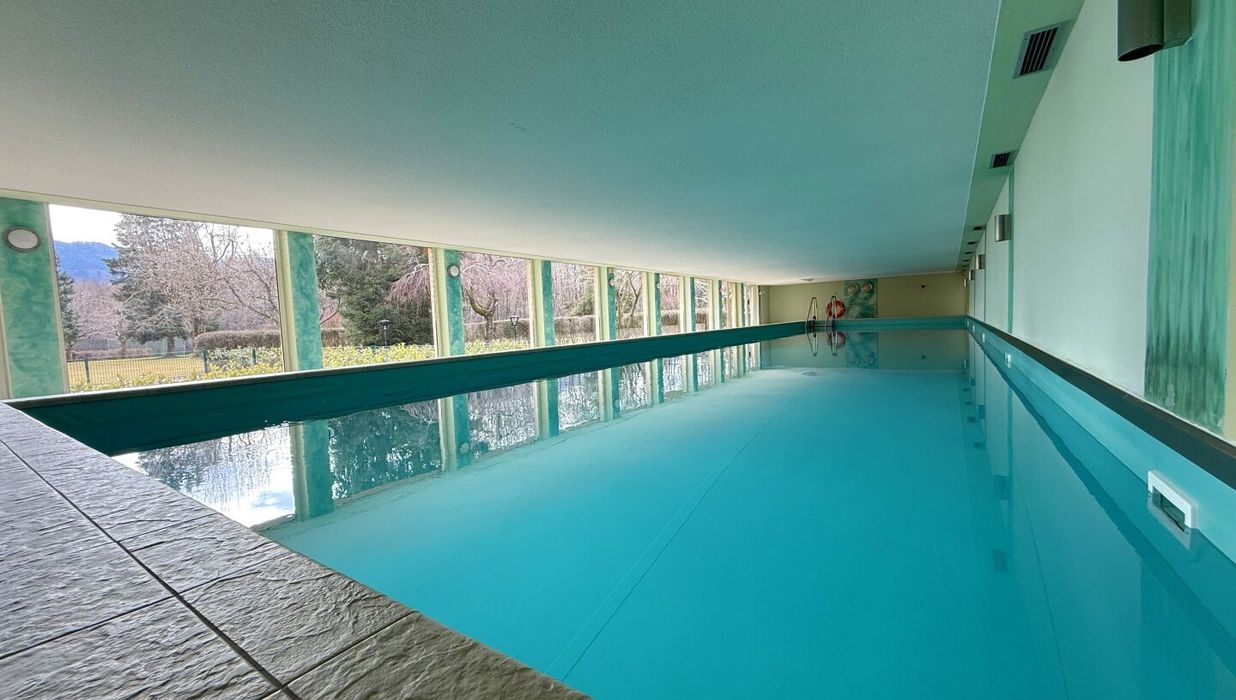 Die gepflegte Wohnanlage erstreckt sich über ein mehr als zweieinhalb Hektar großes Areal und bietet zahlreiche Annehmlichkeiten wie ein ganzjährig geöffnetes Hallenbad, eine weitläufige Gartenanlage sowie vielseitige Freizeitangebote wie einen Beachvolleyballplatz, eine Bocciabahn und einen Kinderspielplatz. Zudem verfügt die Anlage über einen wunderschönen Badestrand mit Badesteg. Die ruhige und sonnige Lage macht diese Wohnung zu einem idealen Rückzugsort.