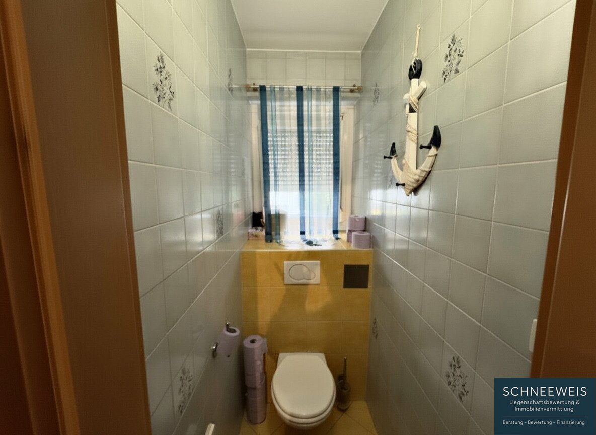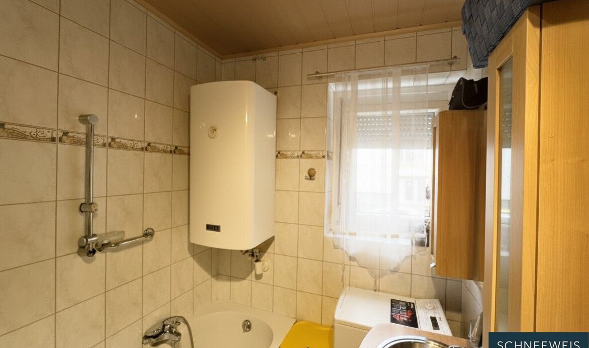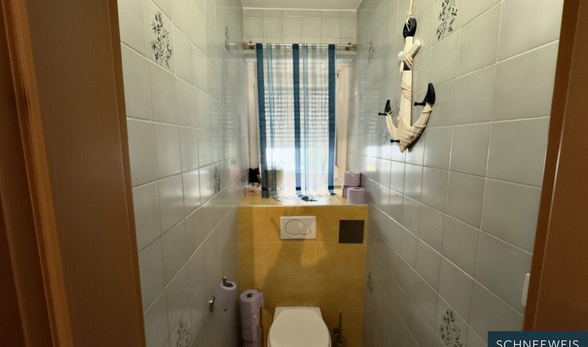 Das Badezimmer ist mit einer Badewanne sowie einem Waschmaschinenanschluss ausgestattet und verfügt über ein Fenster, welches eine natürliche Belichtung und Belüftung (Fensterlüftung) ermöglicht. Die davon getrennt angeordnete Toilette ist ebenfalls mit einem Fenster zur natürlichen Belüftung versehen und vervollständigt dieses insgesamt als familiengerecht zu beurteilende Wohnungsangebot. Darüber hinaus ist der Wohnung ein persönliches Kellerabteil zugeteilt, welches zusätzlichen Stauraum bietet.