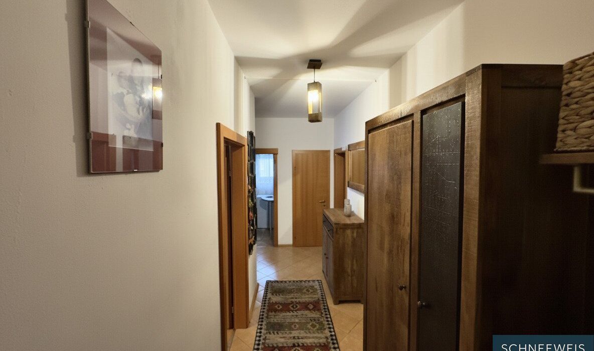 Die gemütliche 3-Zimmer-Wohnung im 1. Obergeschoss wird über ein kurzes Stiegenpodest erschlossen. Der großzügig bemessene Vorraum bietet ausreichend Platz für eine Garderobe sowie Stauraum für diverse Haushaltsutensilien und leitet in den offen gestalteten Wohn-Essbereich über. Von diesem gelangt man unmittelbar auf die Loggia, in welcher ein praktischer Abstellraum integriert ist. Die Wohnung verfügt über eine äußerst großzügige, gut erhaltene Einbauküche, welche in einem eigenen, vom Wohn-Essbereich getrennten Raum untergebracht ist und diesen funktional ergänzt. Zusätzlich stehen ein geräumiges Schlafzimmer sowie ein gut dimensioniertes Kinderzimmer zur Verfügung, wodurch eine zeitgemäße und bedarfsgerechte Wohnnutzung gewährleistet ist.