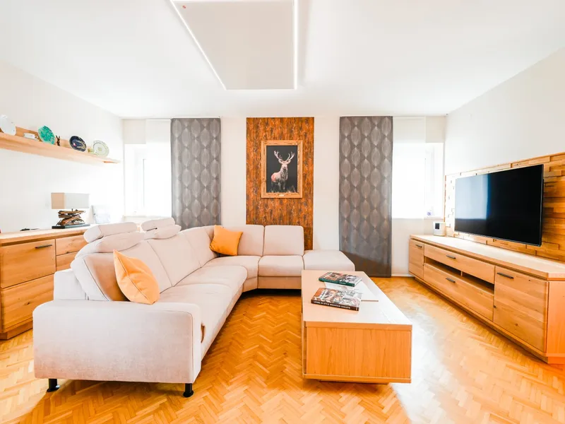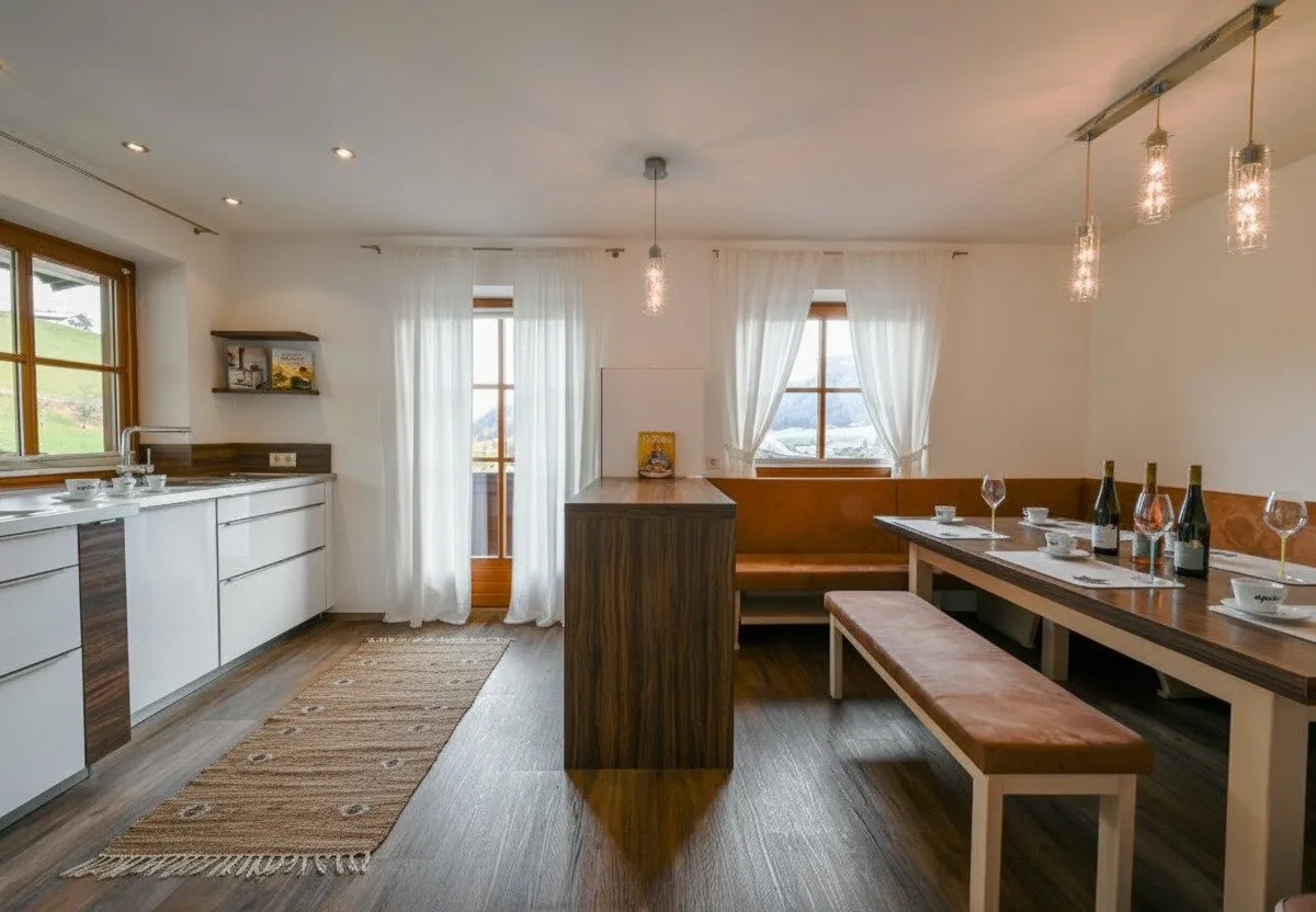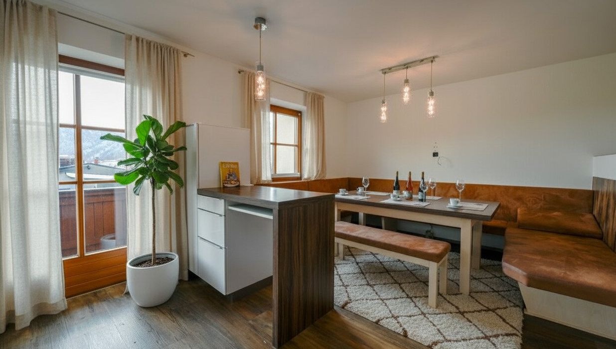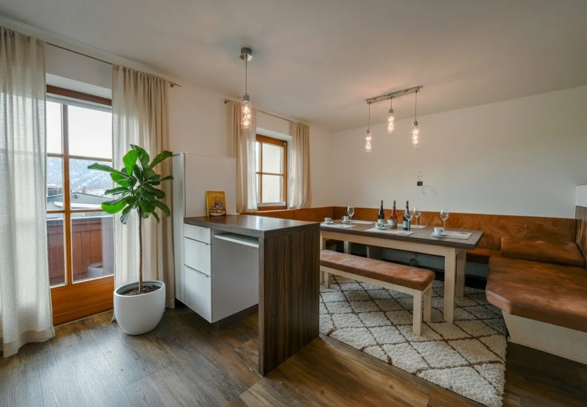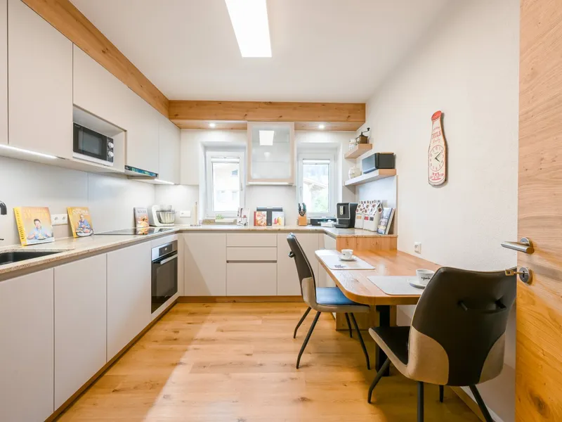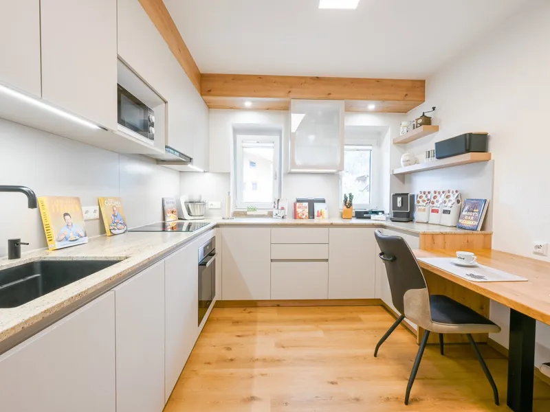 Mit einer großzügigen Fläche von 96 m² haben Sie ausreichend Platz, um Ihre persönlichen Wohnträume zu verwirklichen. Die Wohnung überzeugt durch eine gelungene Raumaufteilung, die ein angenehmes Wohngefühl vermittelt. Die lichtdurchflutete Wohnküche ist der perfekte Ort, um gesellige Abende mit Familie und Freunden zu verbringen. Hier wird das Kochen zum Erlebnis, während Sie die Aussicht auf den glitzernden Thiersee und die majestätischen Berge genießen. Ein weiteres Highlight ist der Kachelofen, der in den kälteren Tagen ein Gefühl von Gemütlichkeit und Behagen aufkommen lässt.