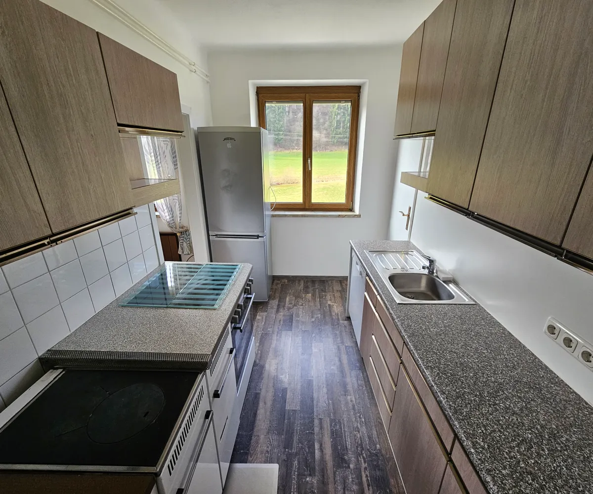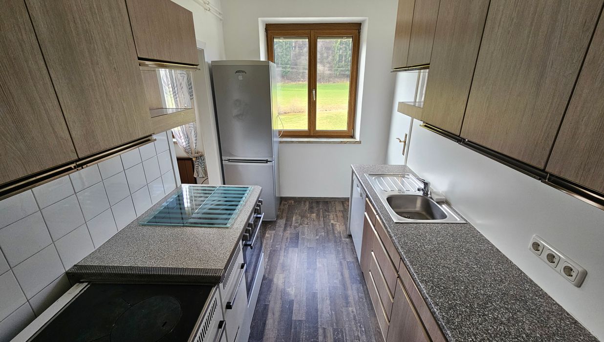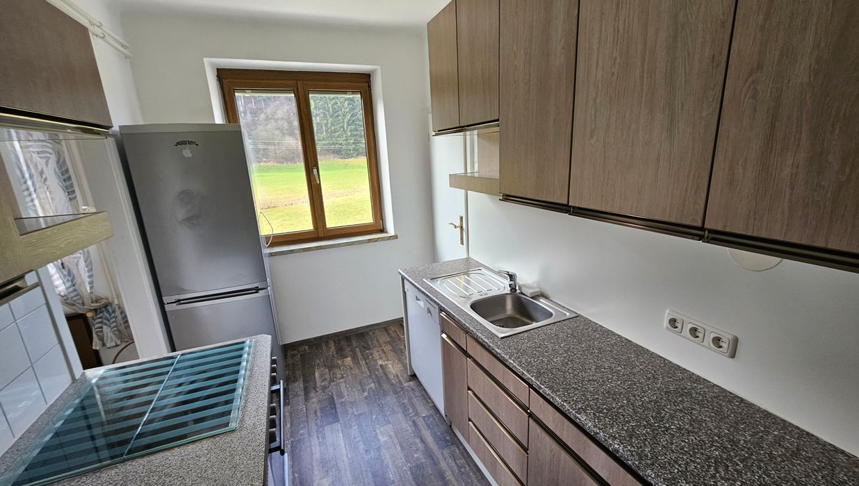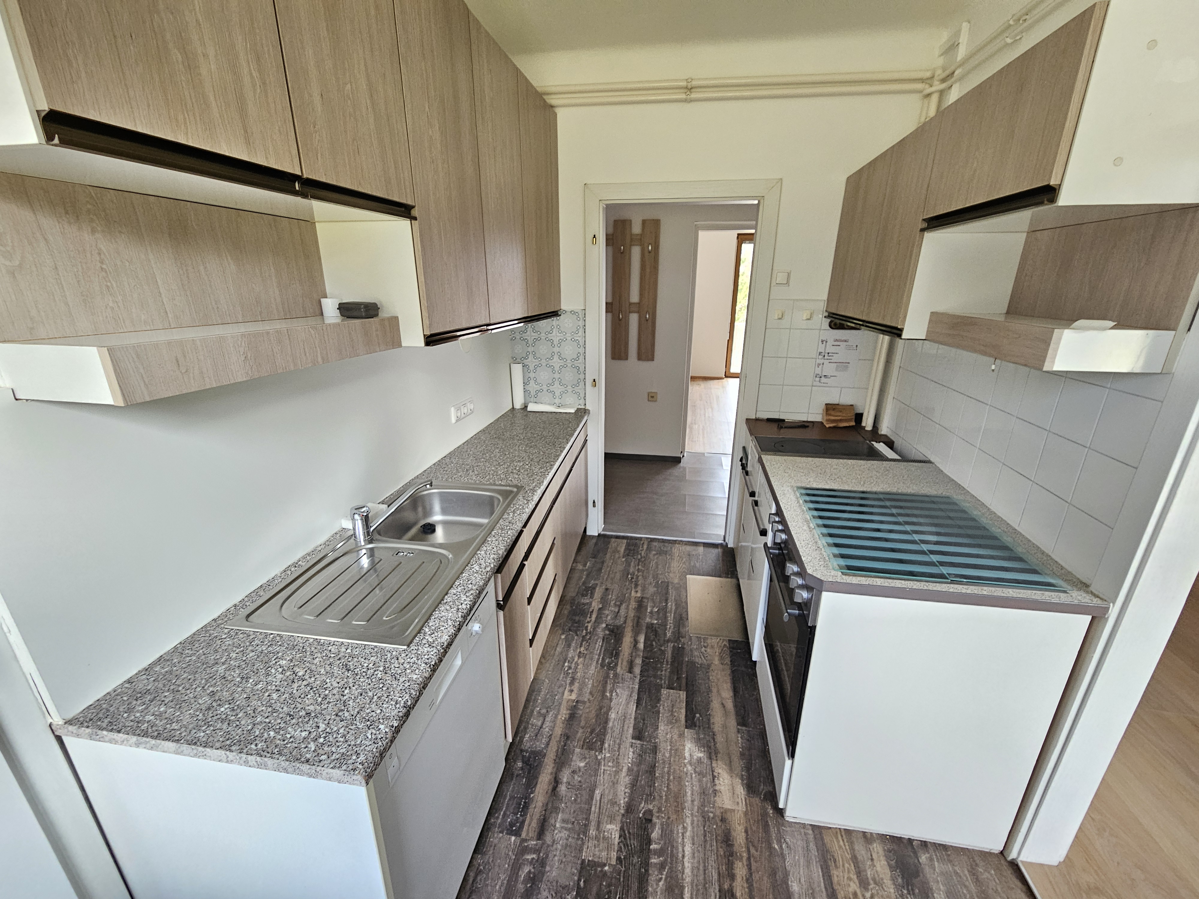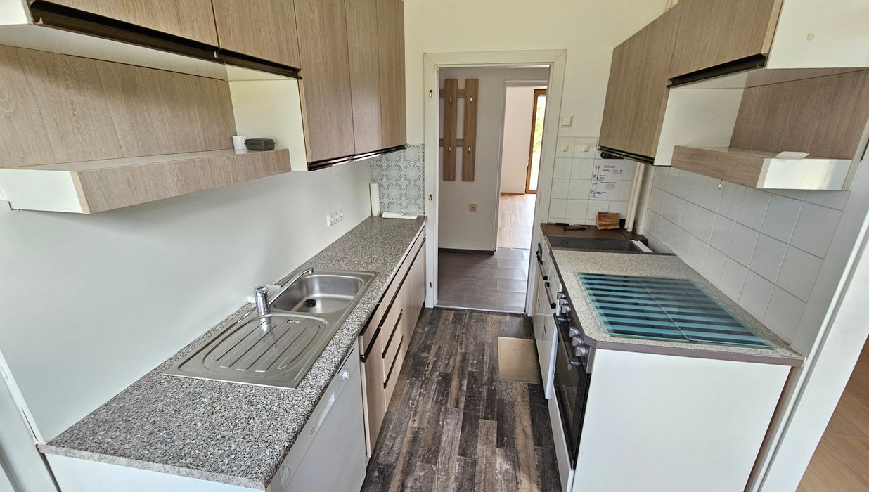 Die Wohnung verfügt über eine vollständig möblierte Einbauküche, einem Wohnzimmer mit Essbereich und Ausgang auf die südseitige Loggia, die Sie zum Genießen und Entspannen einlädt.
