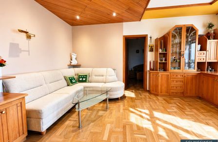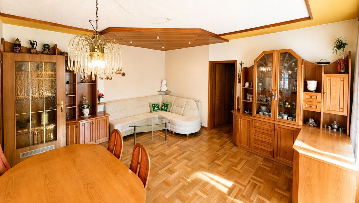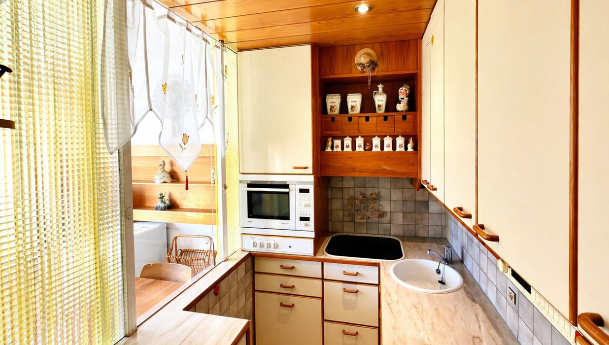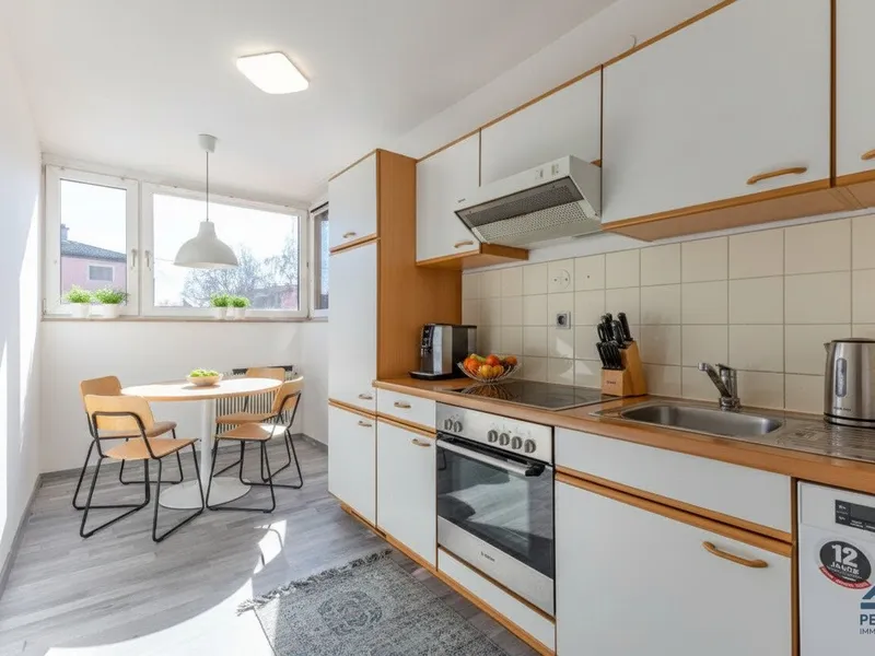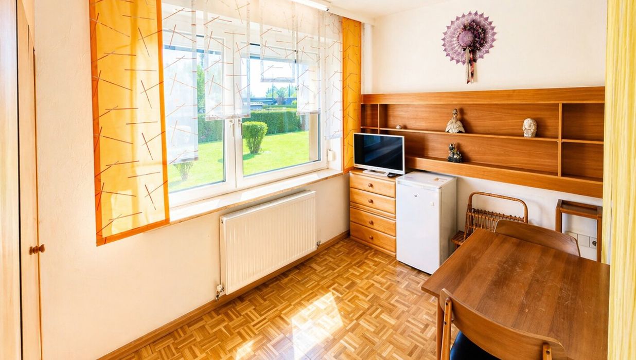 Der Wohnbereich präsentiert sich äußerst gemütlich und bietet vielfältige Möblierungsoptionen – ideal als zentraler Lebensmittelpunkt. Die Wohnung wird größtenteils möbliert übergeben, wodurch ein rascher Start in die Nutzung bzw. eine temporäre Übergangslösung während der Modernisierung möglich ist. Insgesamt ist die Einheit jedoch sanierungsbedürftig und bietet damit die Gelegenheit, Ausstattung und Oberflächen nach eigenen Vorstellungen zeitgemäß zu adaptieren. Die separate, kleine Einbauküche ist funktional geplant und verfügt über ausreichend Stauraum; ein Essplatz ist bereits im Wohnzimmer integriert. Das Badezimmer ist mit Dusche, Handtuchtrockner sowie einem Waschmaschinenanschluss ausgestattet. Zwei weitere Zimmer eignen sich flexibel als Schlaf-, Kinder-, Gäste- oder Arbeitszimmer und machen die Wohnung sowohl für Paare als auch für kleine Familien bzw. für eine Nutzung mit Homeoffice attraktiv.