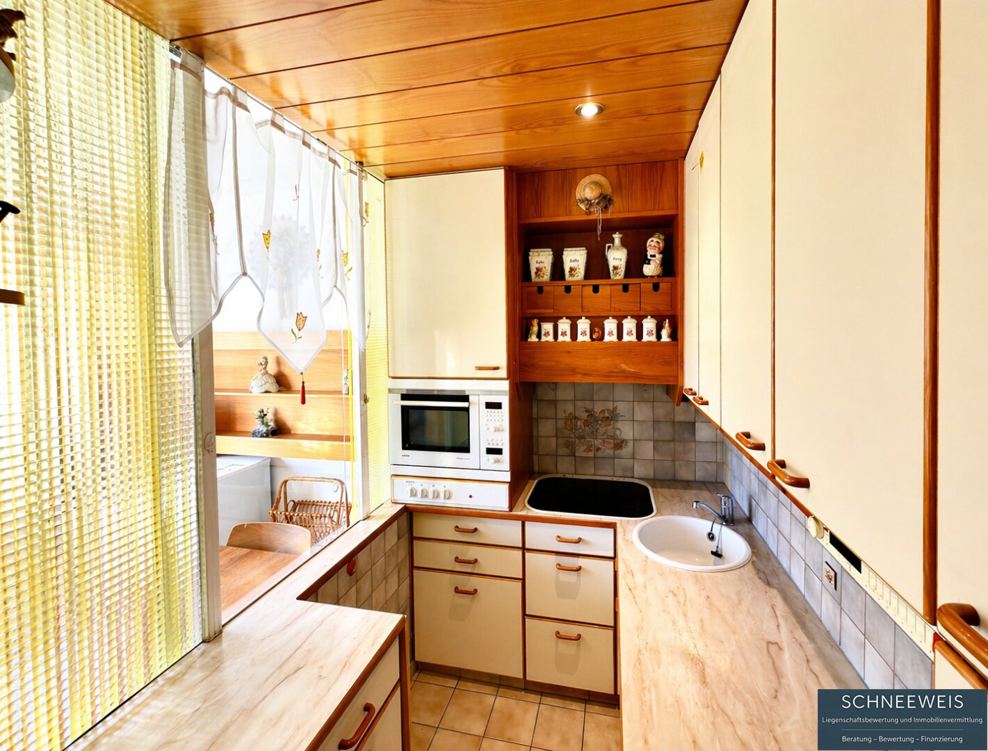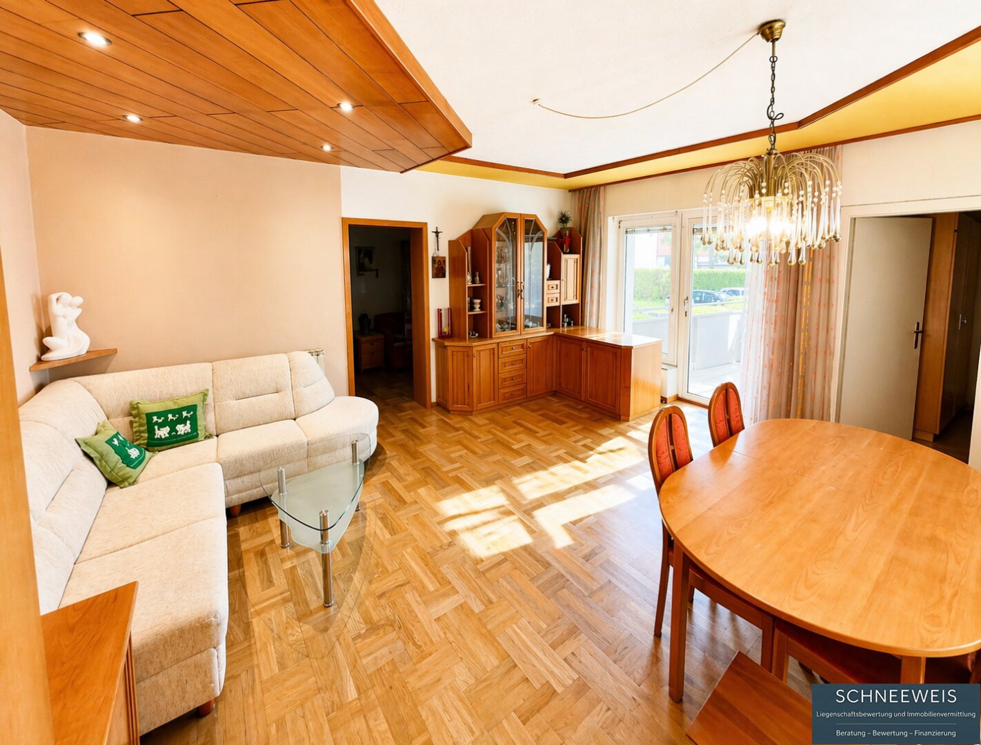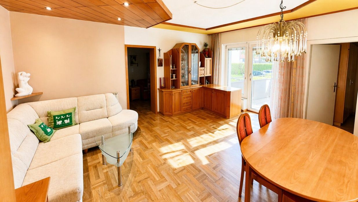 Der Wohnbereich präsentiert sich äußerst gemütlich und bietet vielfältige Möblierungsoptionen – ideal als zentraler Lebensmittelpunkt. Die Wohnung wird größtenteils möbliert übergeben, wodurch ein rascher Start in die Nutzung bzw. eine temporäre Übergangslösung während der Modernisierung möglich ist. Insgesamt ist die Einheit jedoch sanierungsbedürftig und bietet damit die Gelegenheit, Ausstattung und Oberflächen nach eigenen Vorstellungen zeitgemäß zu adaptieren. Die separate, kleine Einbauküche ist funktional geplant und verfügt über ausreichend Stauraum; ein Essplatz ist bereits im Wohnzimmer integriert. Das Badezimmer ist mit Dusche, Handtuchtrockner sowie einem Waschmaschinenanschluss ausgestattet. Zwei weitere Zimmer eignen sich flexibel als Schlaf-, Kinder-, Gäste- oder Arbeitszimmer und machen die Wohnung sowohl für Paare als auch für kleine Familien bzw. für eine Nutzung mit Homeoffice attraktiv.