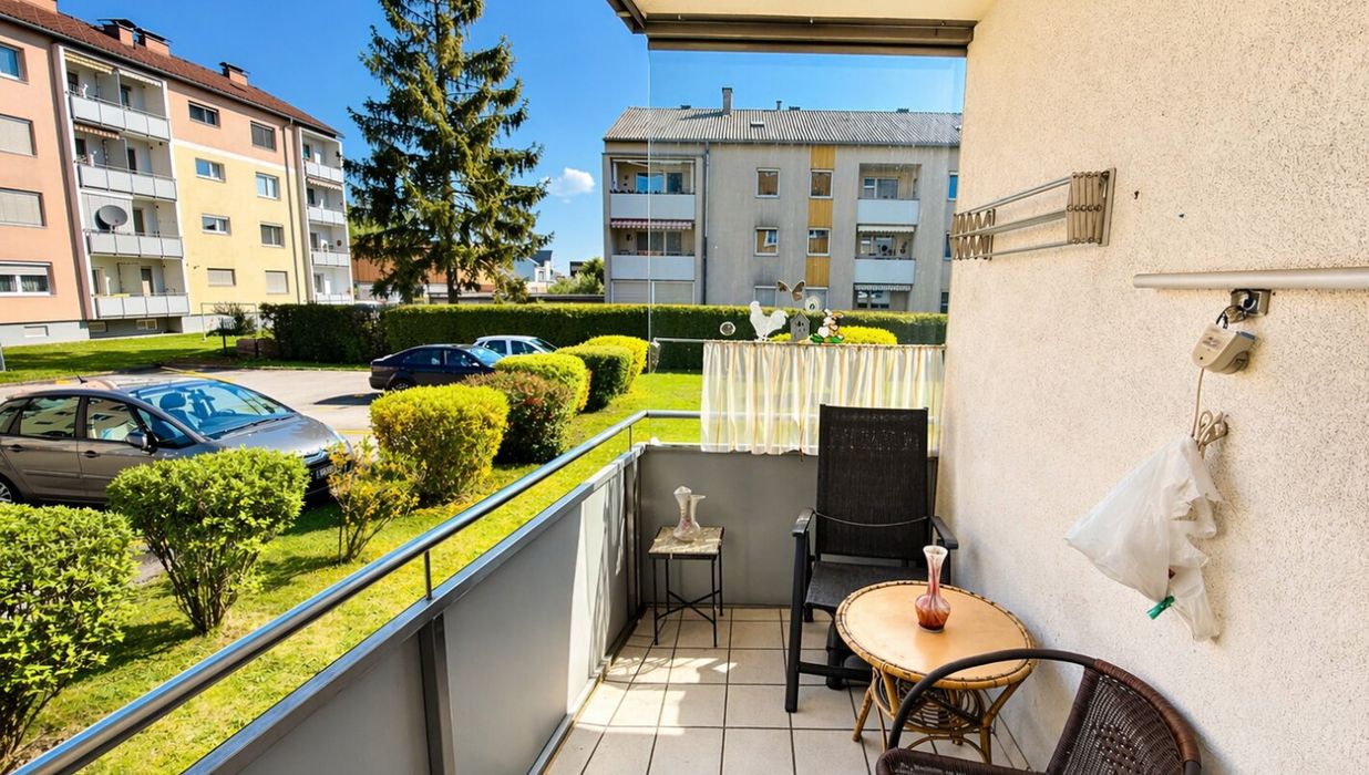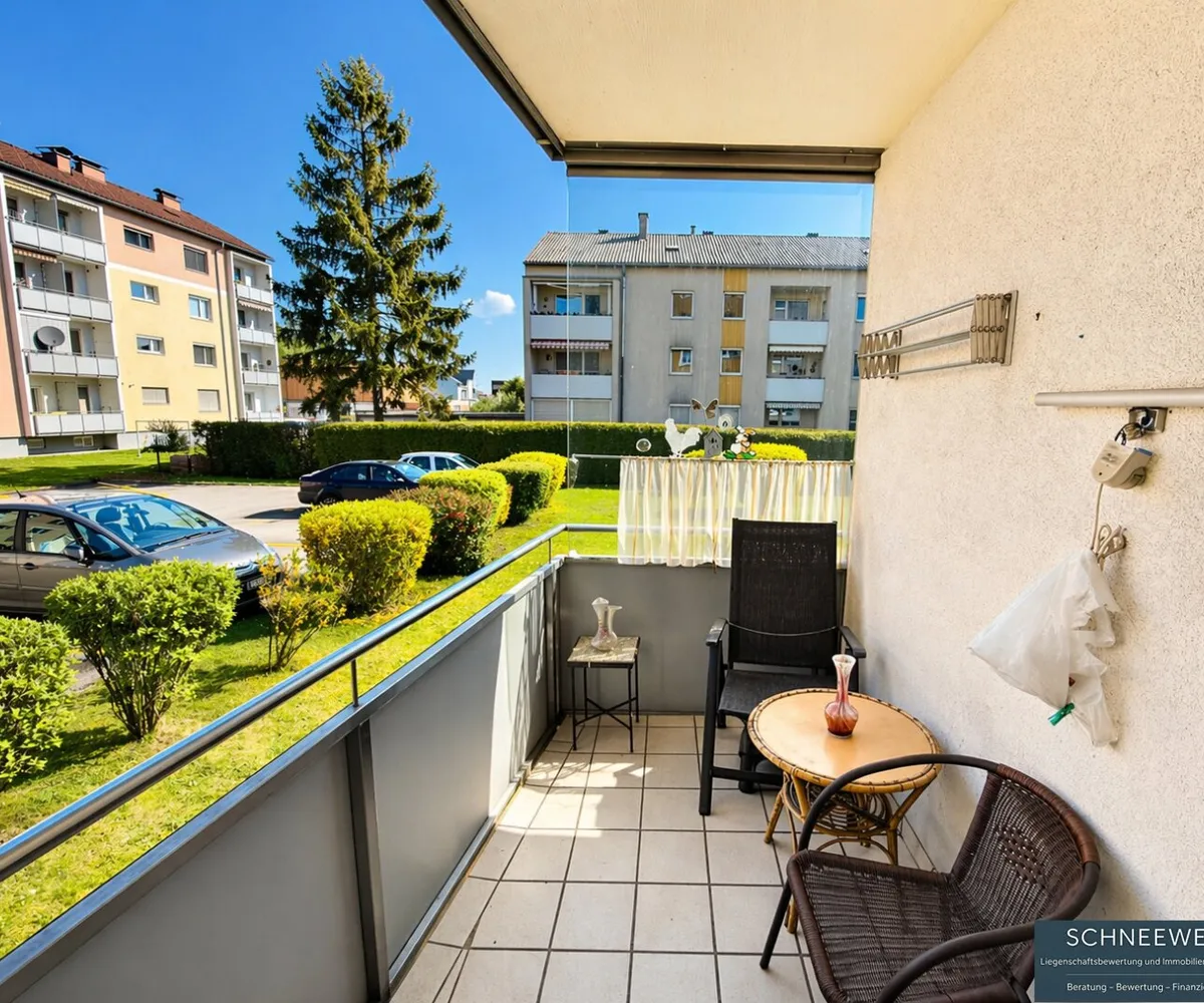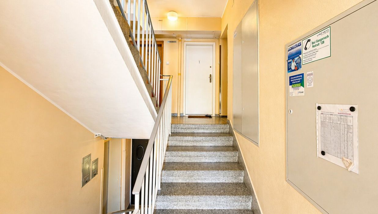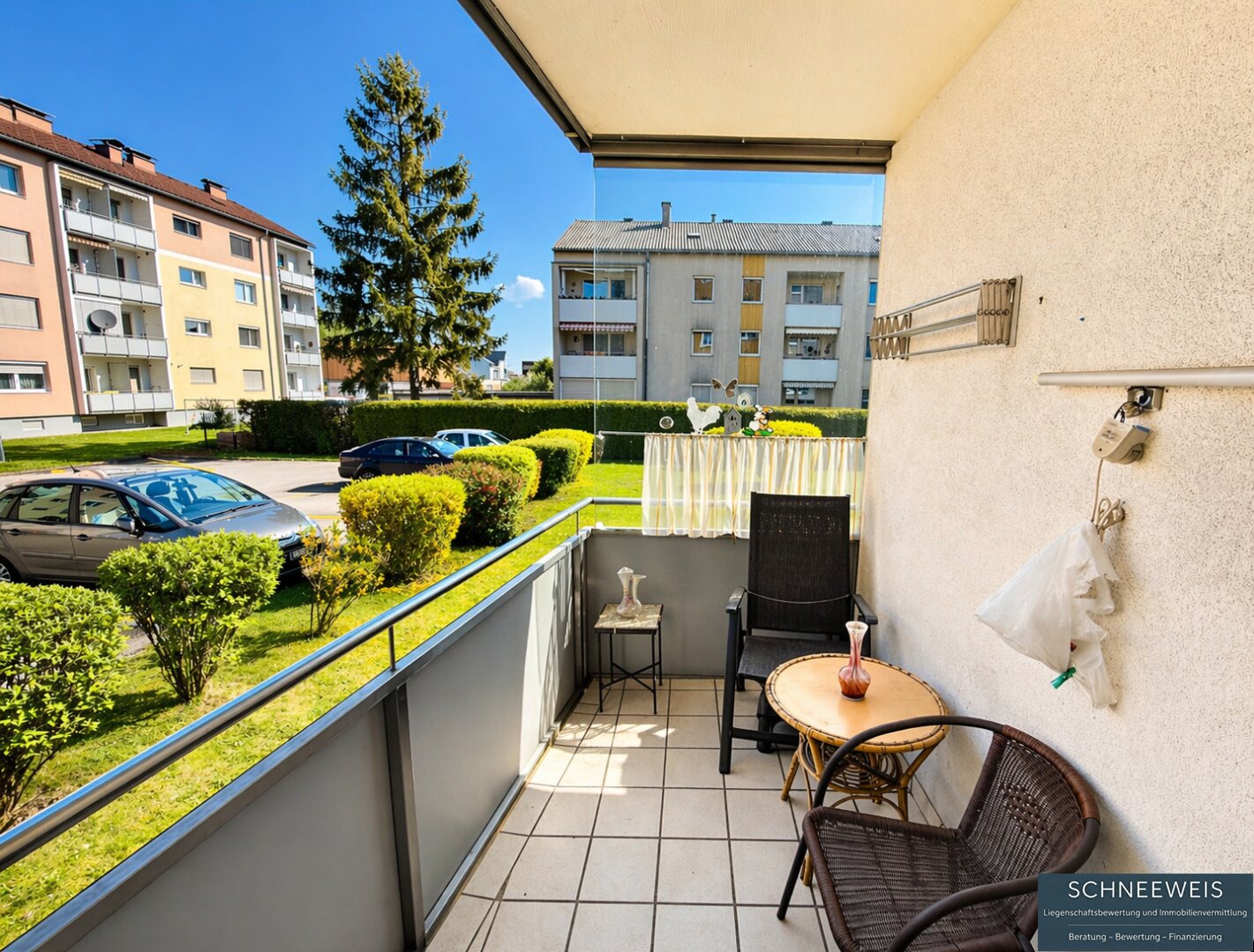 Für die Sommermonate steht ein liebevoller, kleiner Balkon zur Verfügung. Ergänzend ist ein Kellerabteil der Wohnung zugeordnet. Parkplätze befinden sich direkt angrenzend bei der Liegenschaft. Der solide Bauzustand und die gepflegte Gesamtanlage unterstreichen den wertbeständigen Charakter der Liegenschaft und runden das Gesamtbild ab.