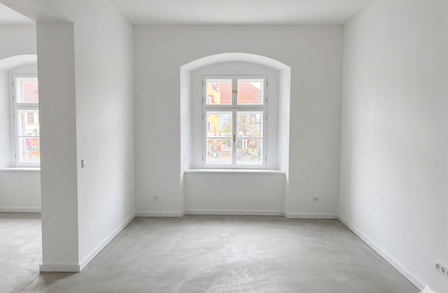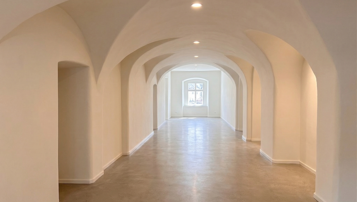 Die Architektur besticht durch eine lichte Raumhöhe von mindestens 2,50 m, wobei in ausgewählten Bereichen Höhen von bis zu 2,90 m erreicht werden. Teilweise erhaltene alte Deckengewölbe verleihen den Räumen eine elegante, beständige Ausstrahlung, während in den straßenseitigen Zimmern neue Stahlbetondecken für höchste Stabilität sorgen. Die harmonische Verbindung aus traditioneller Substanz und zeitgemäßer Planung schafft eine Atmosphäre, die sowohl repräsentatives Wohnen als auch private Lebensbereiche perfekt ermöglicht.