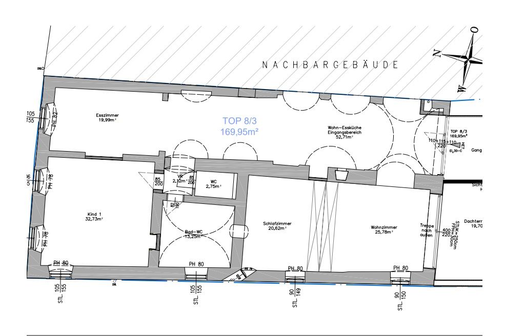 Diese besondere Wohnung liegt direkt am historischen Hauptplatz 8 im Herzen von Tulln. Sie verbindet den unverwechselbaren Charakter eines stilvollen Altbaus mit modernster Wohnqualität auf höchstem Niveau. Im ersten Obergeschoss gelegen, bietet die Wohnung TOP 3 auf einer großzügigen Wohnfläche von 169,95 m² ein beeindruckendes Raumgefühl.