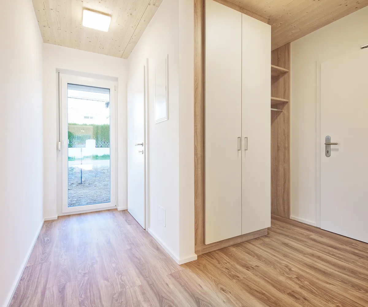 Die Wohnung wird im Erstbezug übergeben und ist Teil eines ökologischen Massivholzprojekts, das ein gesundes Raum- und Wohnklima mit nachhaltiger Bauweise und zeitgemäßer Architektur verbindet.