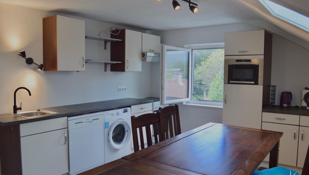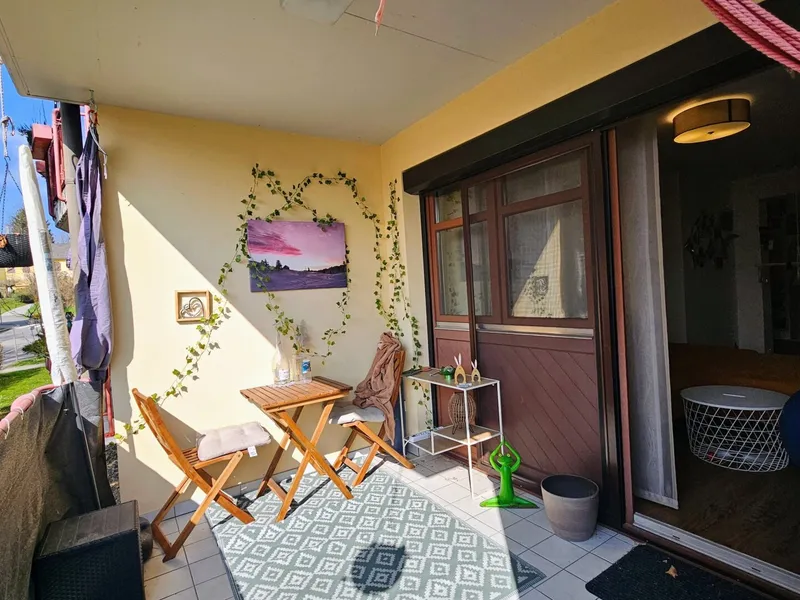 Ein Highlight der Wohnung ist der großzügige Südbalkon, der Ihnen einen traumhaften Ausblick auf die umliegenden Berge, das grüne Umland und Fernblick bietet. Hier können Sie entspannte Stunden verbringen, den Tag mit einem Frühstück in der Sonne beginnen oder den Abend bei einem Glas Wein ausklingen lassen.