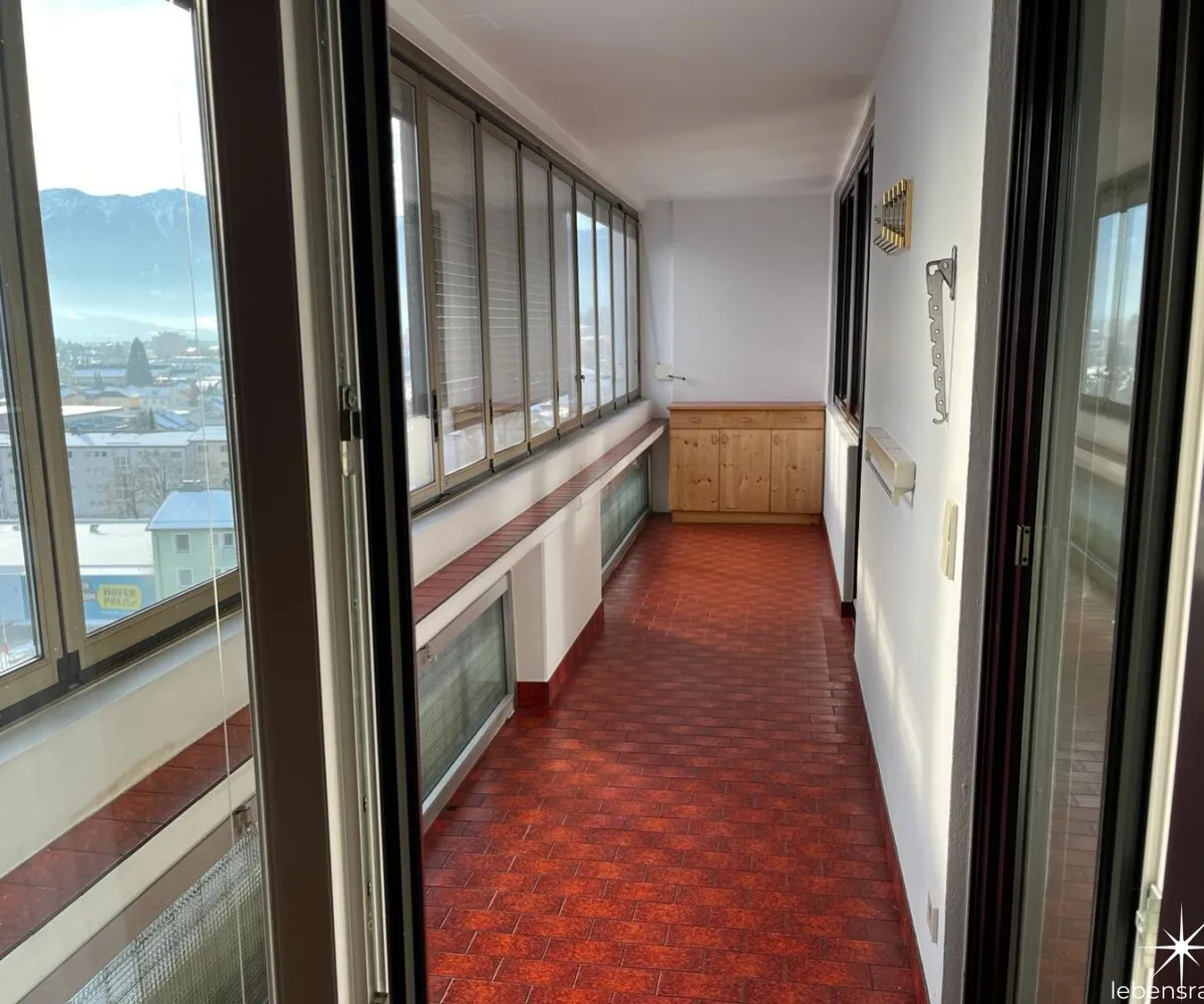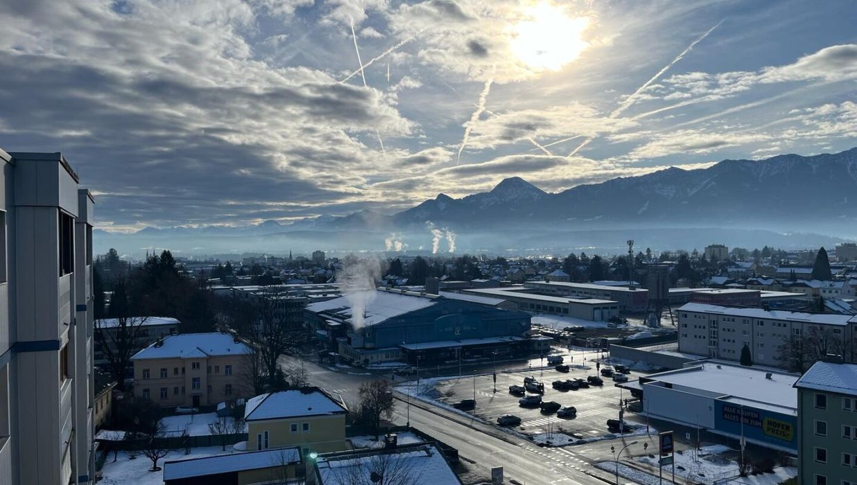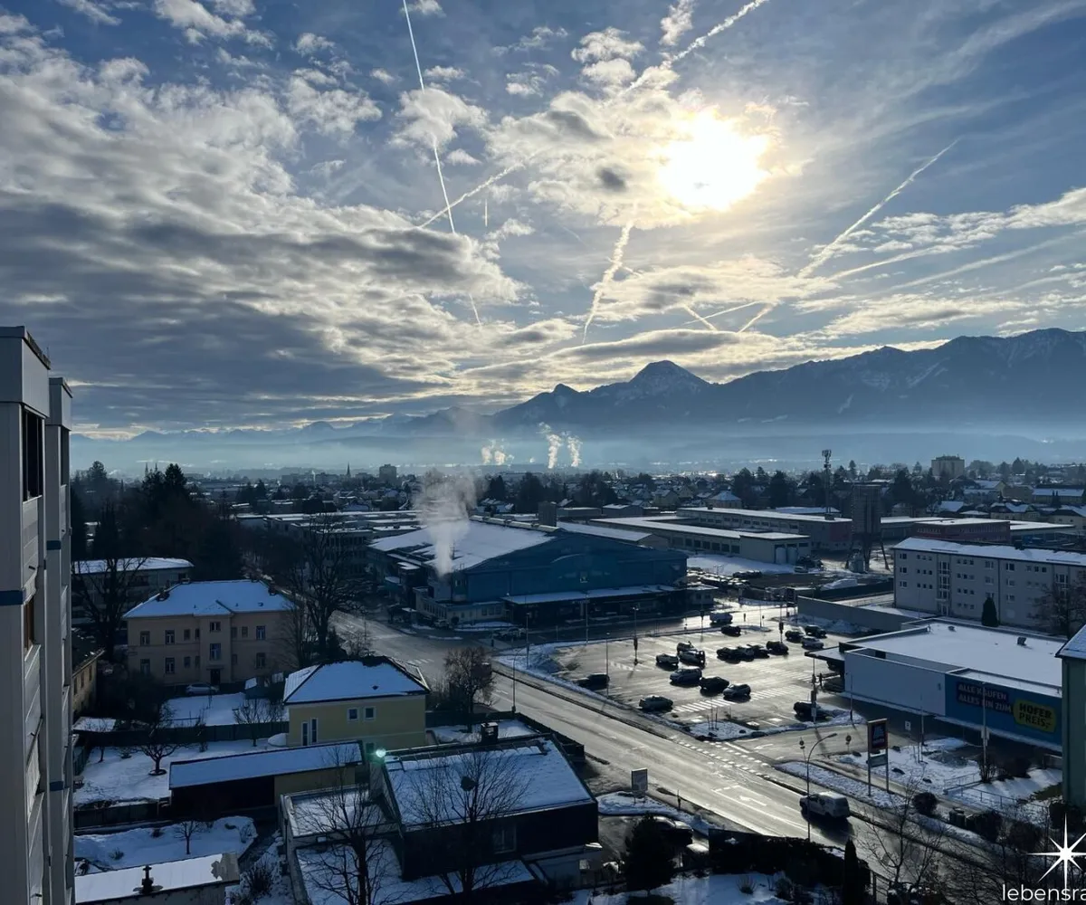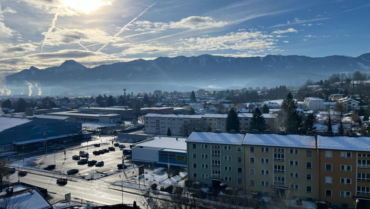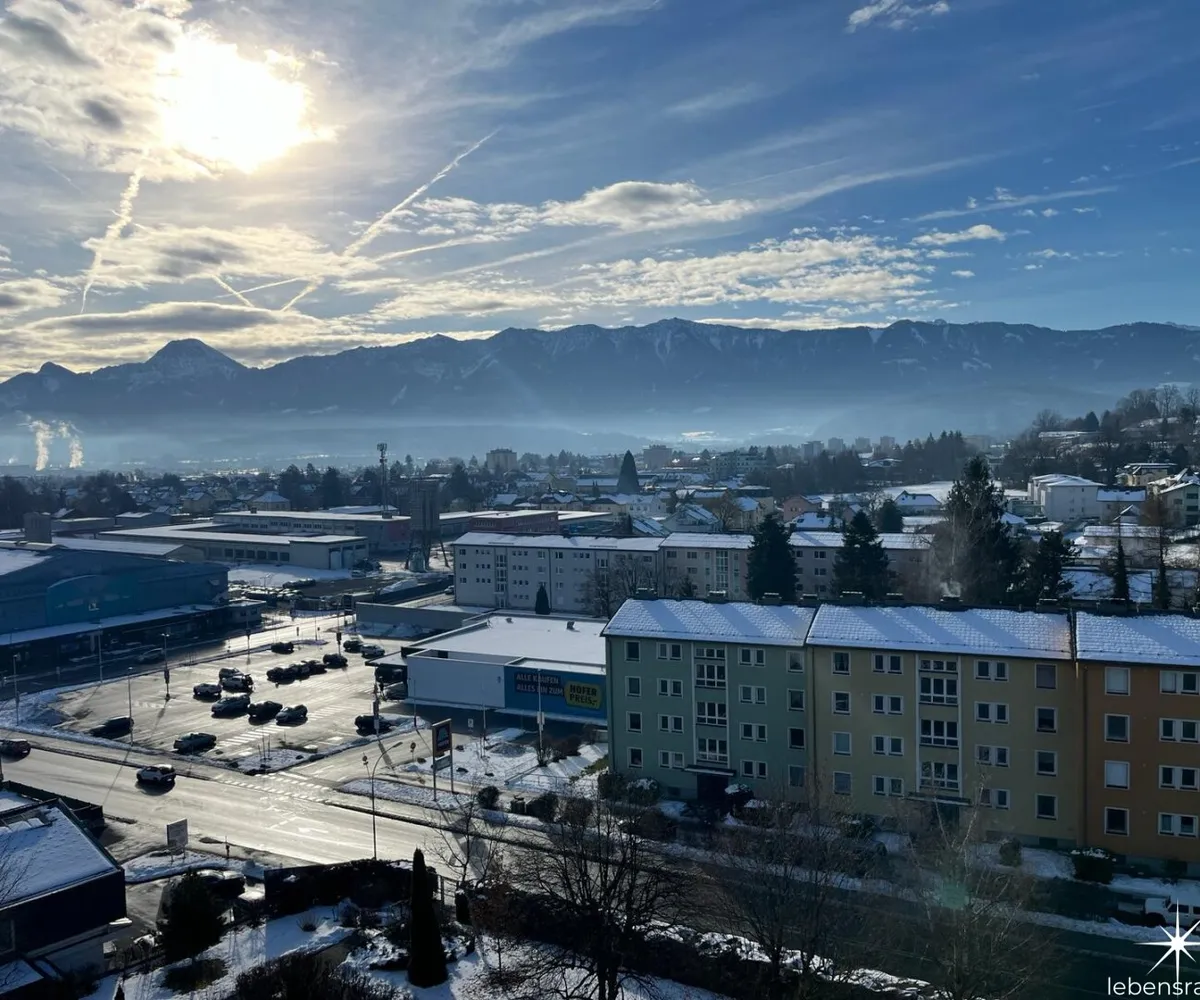 Durch die Lage im 8. Stock bietet die Wohnung einen atemberaubenden Blick Richtung Mittagskogel und die umliegende Berglandschaft.