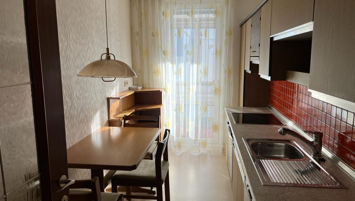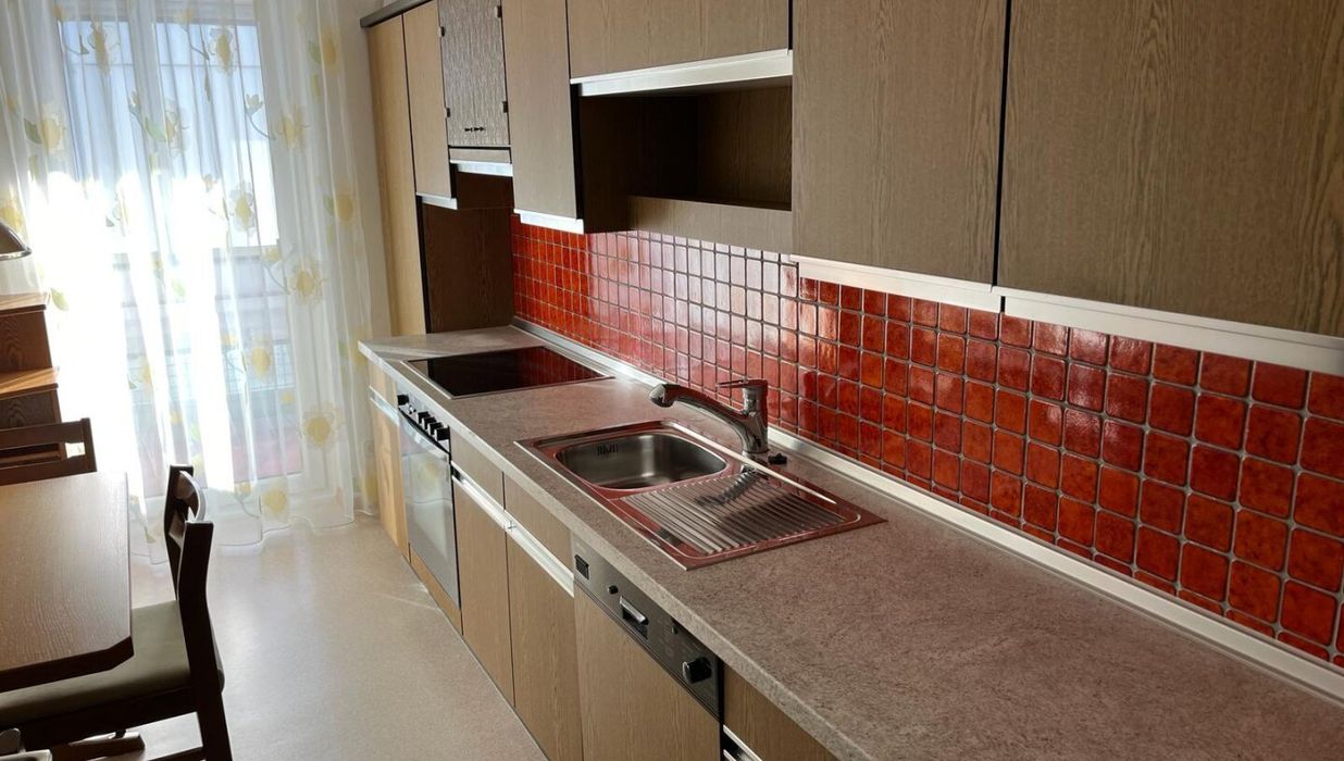 Die Küche ist voll funktionsfähig und bietet mit einem Esstisch auch Platz für gemütliches Zusammensitzen.