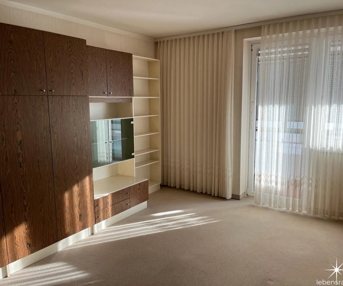 Die Wohnung verfügt über 2 Schlafzimmer, wobei das Kinderzimmer als Stube genutzt wurde. Vom Hauptschlafzimmer aus kann man direkt die Loggia betreten.
