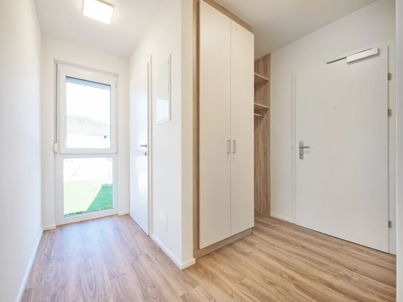Die Wohnung wird schlüsselfertig (ohne Einrichtung) übergeben – Wände, Böden, Türen, Sanitärinstallationen und Malerarbeiten sind bereits fertiggestellt. Küche, Vorzimmer und Möblierung können Sie ganz nach Ihren Vorstellungen gestalten. Die nachhaltige Holzmassivbauweise sorgt für ein angenehmes Raumklima und langfristige Energieeffizienz.