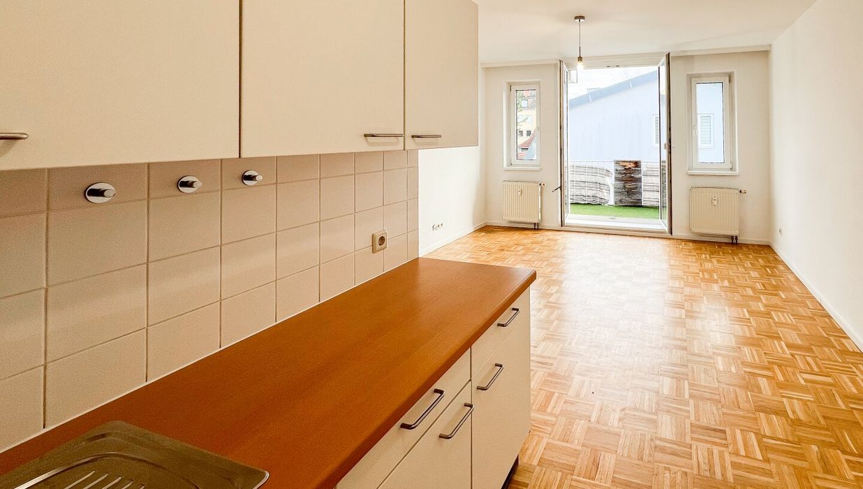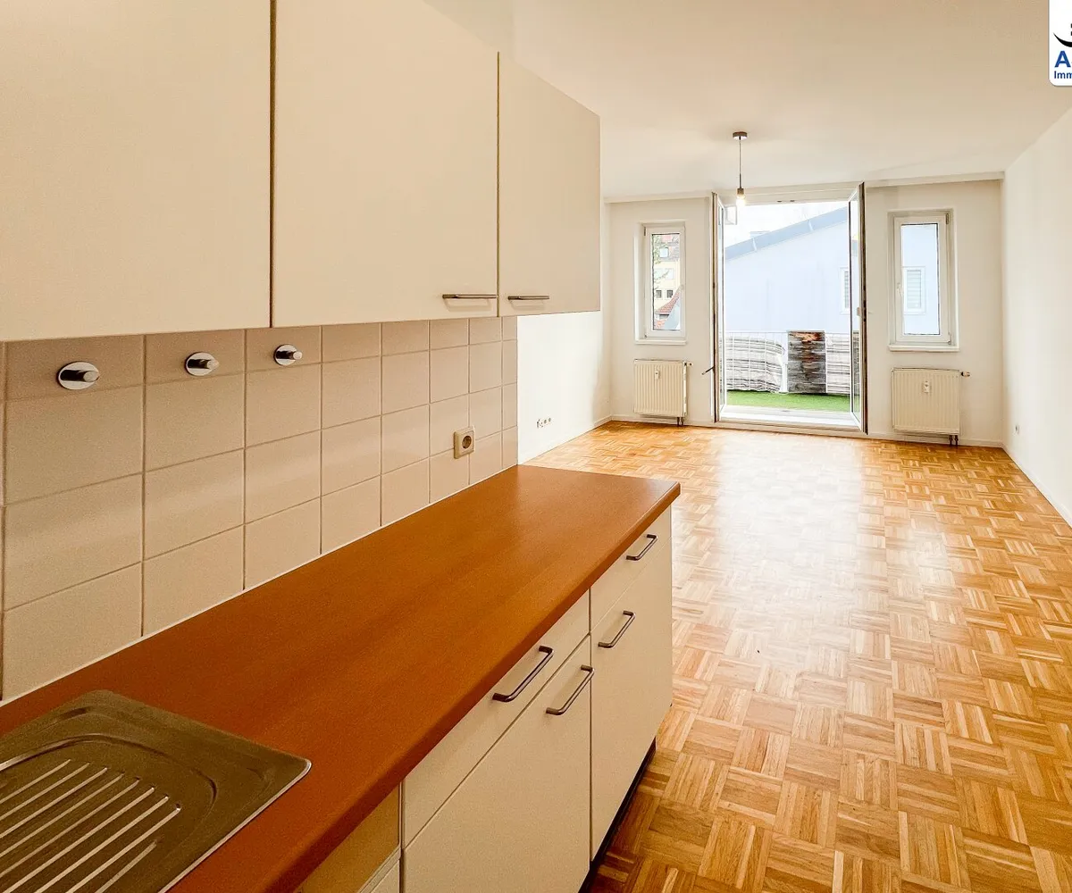 - Wohn-/Essbereich mit Komplettküche inkl. E-Geräten