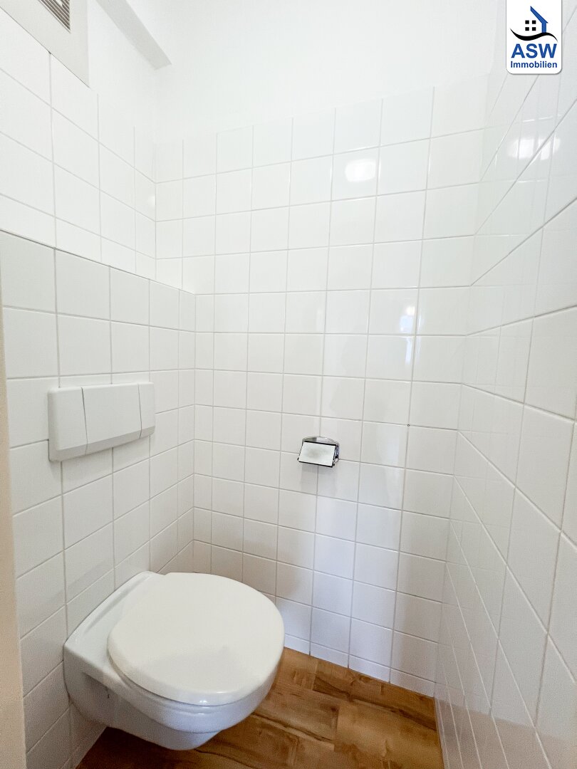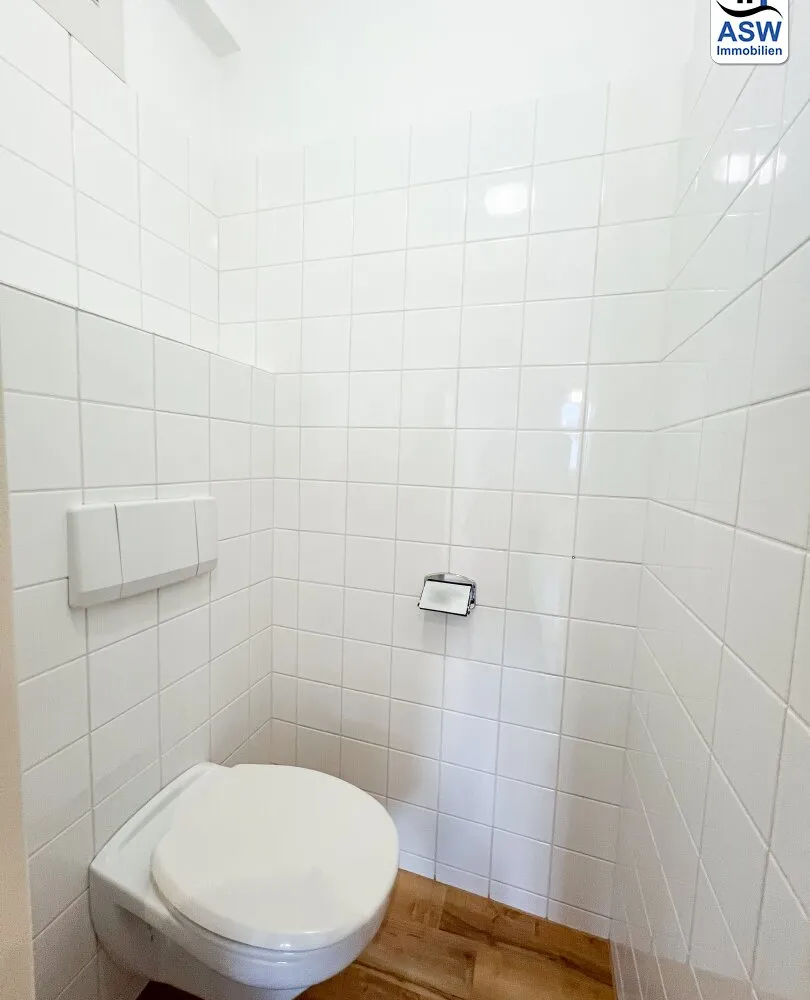 - Badezimmer mit Badewanne, WC und Waschmaschinenanschluss