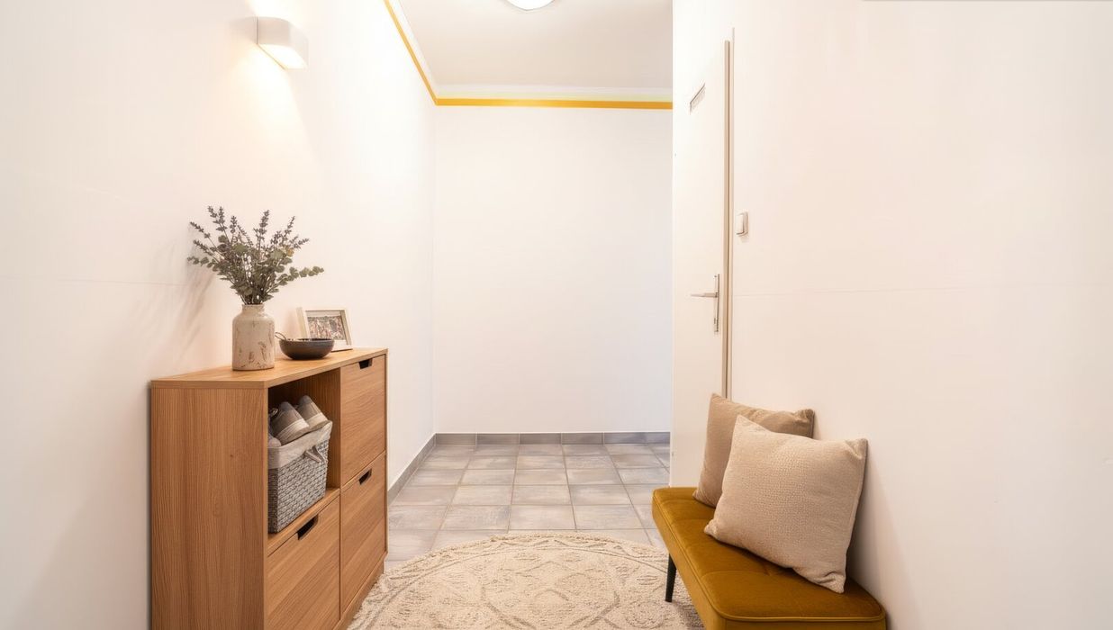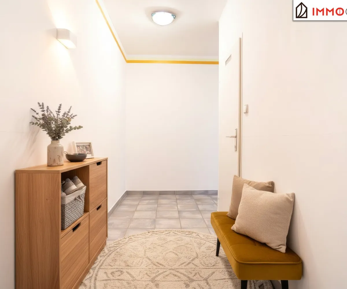 Bereits beim Eintreten empfängt Sie ein einladender Vorraum, der nicht nur als klassischer Eingangsbereich fungiert, sondern geschickt die Funktionen der Wohnung zoniert. Rechter Hand befindet sich das modernisierte Badezimmer - kompakt, aber funktional - sowie ein separates WC. Daneben: ein praktischer Abstellraum mit Waschmaschinenanschluss, ideal für den Alltag.