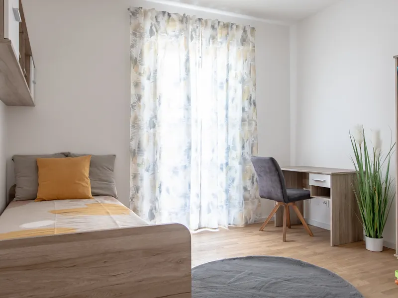 Rund um die Wohnanlage stehen zahlreiche freie Stellplätze zur Verfügung - unkompliziertes Parken inklusive. Auch in puncto Infrastruktur bleiben keine Wünsche offen: Einkaufsmöglichkeiten, Schulen, Busanbindungen sowie Freizeitangebote erreichen Sie in wenigen Minuten. Die Spöttlstraße verbindet städtisches Wohnen mit einem Gefühl der Abgeschiedenheit - ruhig, aber nicht abgelegen.