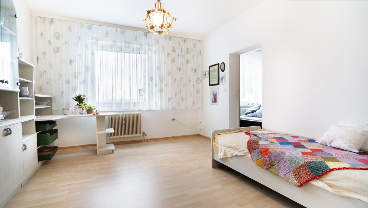 Angrenzend liegen zwei weitere Zimmer, geschickt miteinander verbunden. Ob als Schlafzimmer und Büro, als Rückzugsort mit Ankleide oder für Homeoffice und Gäste - hier ist Raum für Ihre Ideen. Die Verbindung schafft Flexibilität, ohne den Charakter einzelner Räume zu verlieren.
