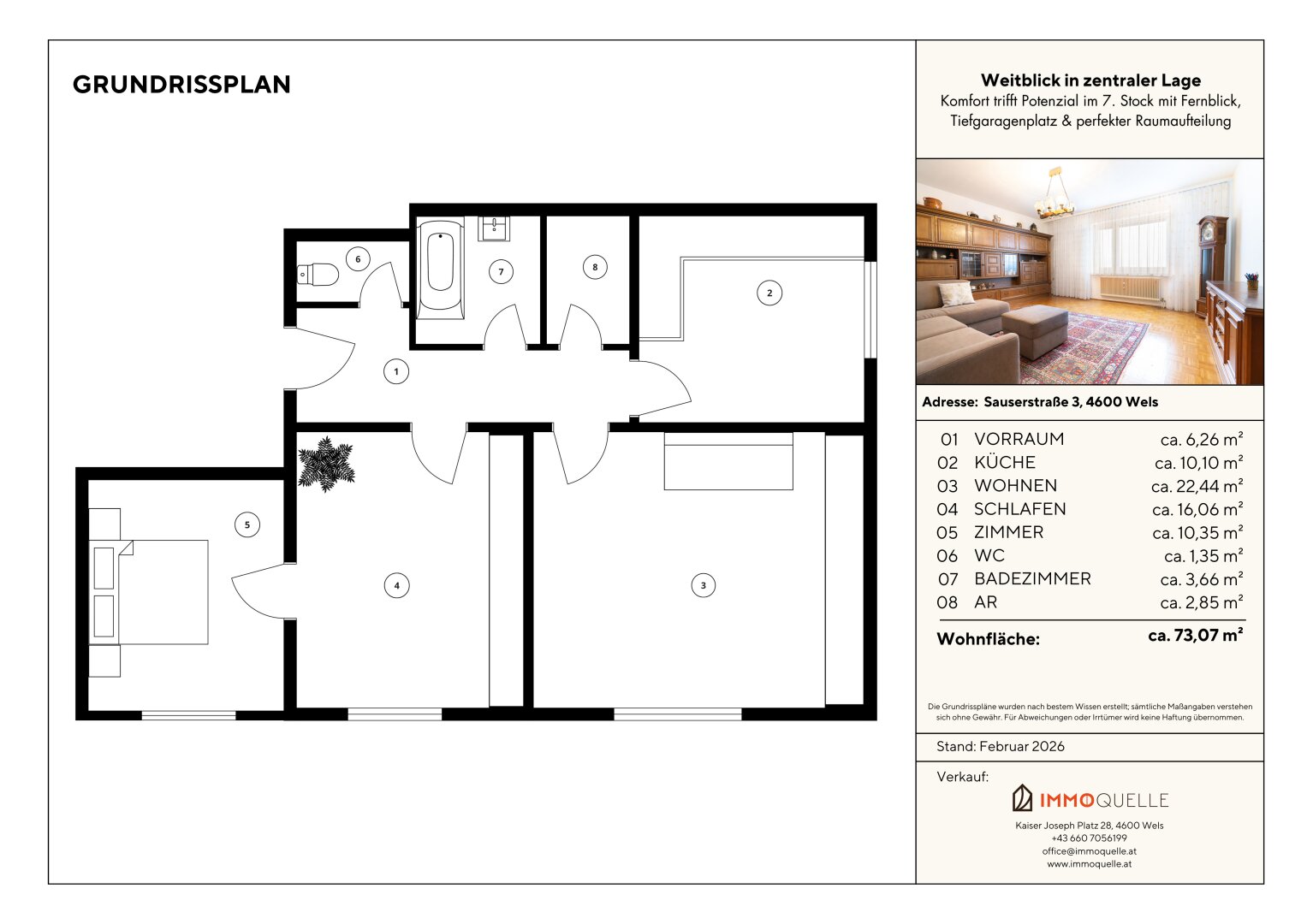 Willkommen in Ihrem neuen Zuhause ! Diese gepflegte Eigentumswohnung im 7. Stock in Wels vereint lichtdurchfluteten Wohnkomfort mit Fernblick und einem klar strukturierten Grundriss - perfekt für Paare, urbane Singles oder Investoren mit Weitsicht.