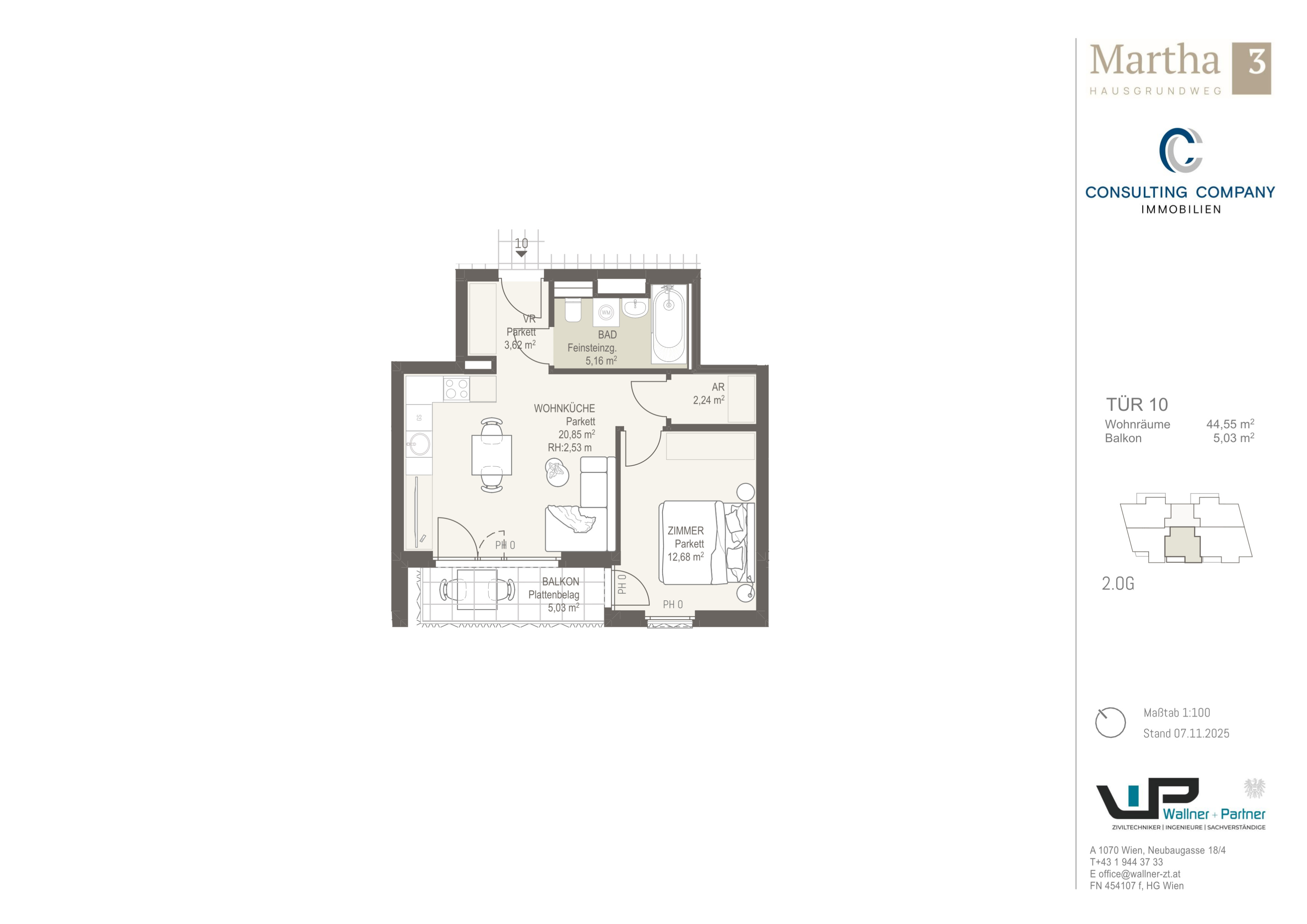 MARTHA liegt in der Donaustadt, im Umfeld der Erzherzog-Karl-Straße – urban, gut angebunden und dennoch angenehm ruhig. Einkaufsmöglichkeiten, Schulen, Kindergärten und medizinische Versorgung befinden sich in unmittelbarer Nähe.