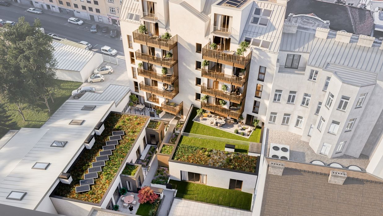 Der attraktive Wohnungsmix mit Freiflächen – Balkone, Loggien, Terrassen und Eigengärten – schafft ein nachhaltiges Gesamtpaket mit starker Nachfrageperspektive .