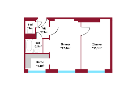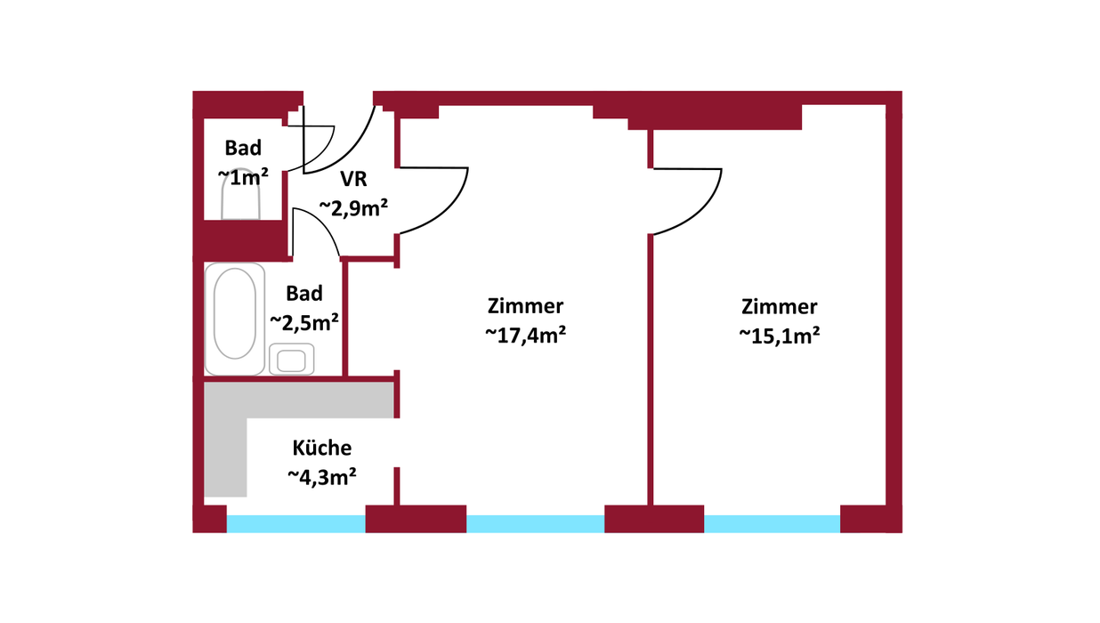 Die Wohnung selbst bietet mit ca. 42 m², zwei Zimmern, Küchennische, Bad mit Wanne und praktischen Schranknischen viel Potenzial . Mit etwas Renovierungsgeschick gestaltest du dir hier dein ganz persönliches Zuhause in absoluter Toplage.