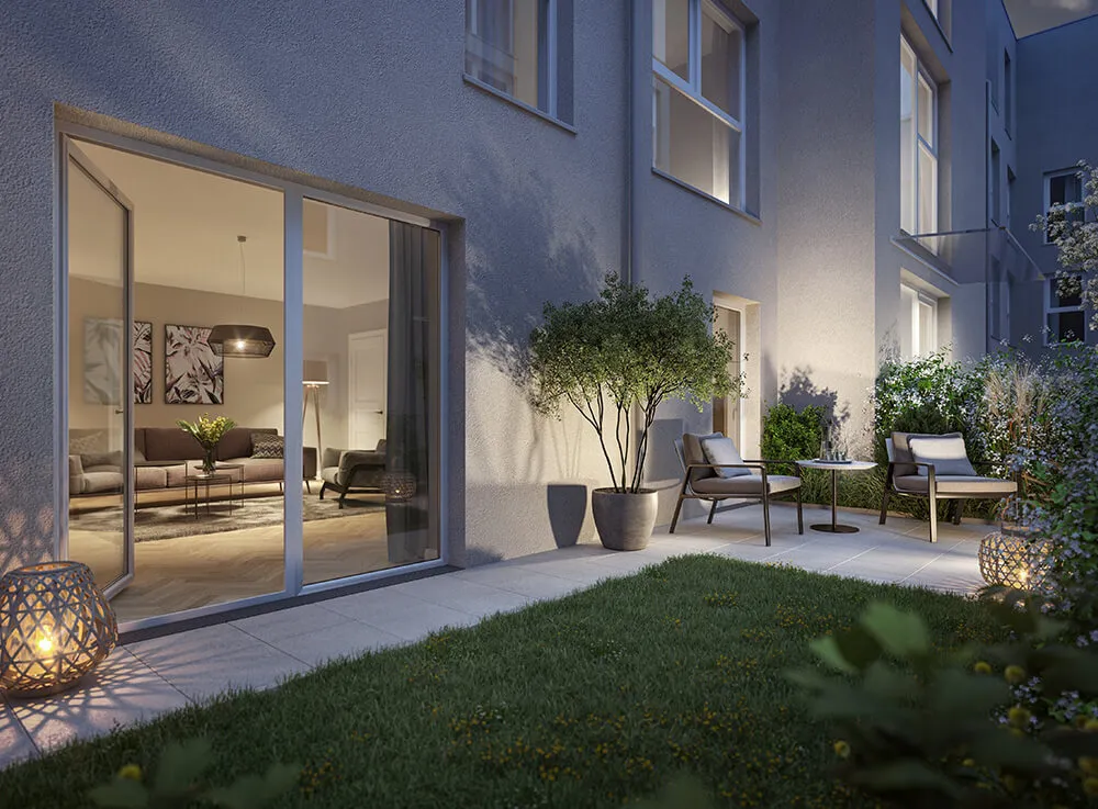 Das späthistorische Wohn- und Geschäftshaus wird unter Berücksichtigung seiner geschichtsträchtigen Vergangenheit hochwertig saniert und durch zwei Dachgeschoße und zwei Hoftrakte erweitert: Im Alt-, Neu- und Dachausbau entstehen individuelle Wohneinheiten mit attraktiven Freibereichen. Die exklusiven Altbauwohnungen im Bestand werden zeitgemäß adaptiert und mit innenhofseitigen Außenflächen ausgestattet. Die Wohnungen in den Hoftrakten und im Dachgeschoß bieten viel Raum für Neues: offene, lichtdurchflutete Wohnräume und großzügige Gärten, Loggien und Terrassen.
