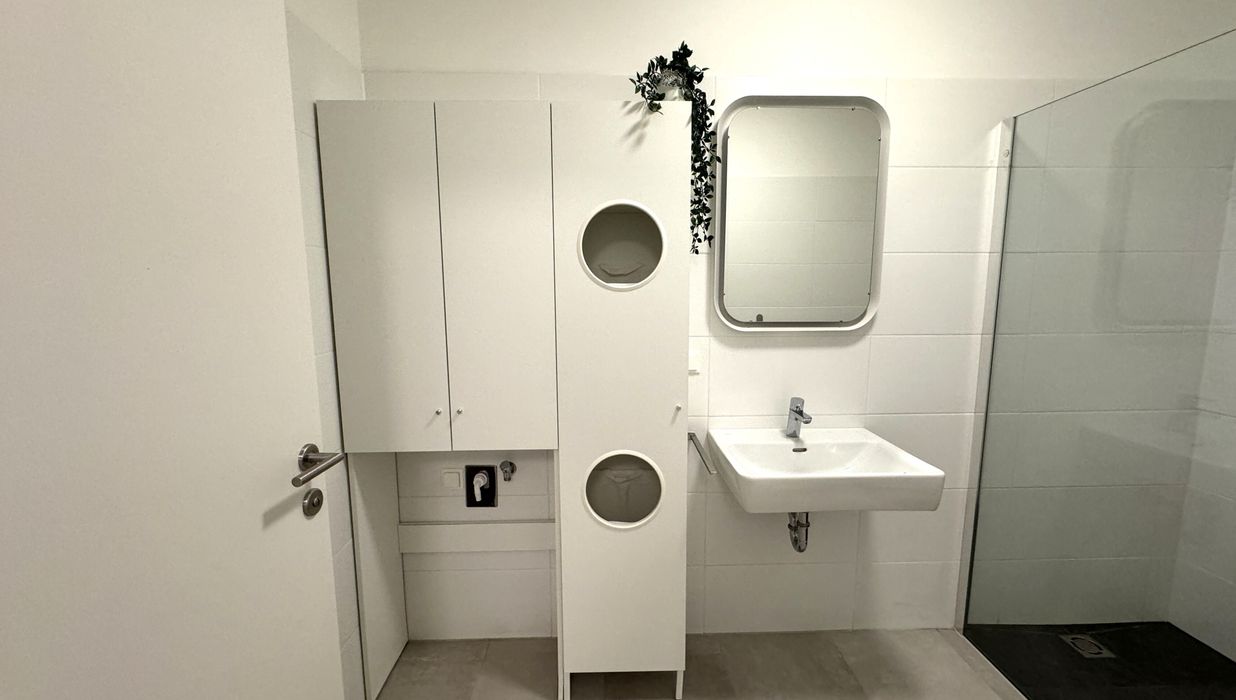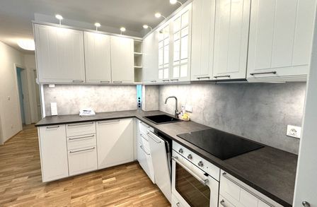 Die Wohnung war kurzzeitig bewohnt und würde inkl. der abgebildeten Möblierung übergeben werden. Die Ablöse für das auf den Fotos abgebildete Mobiliar inkl. Küche beträgt EUR 2.000,-.