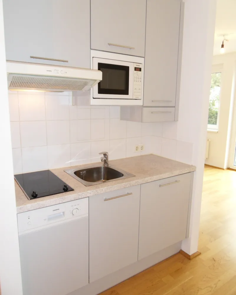 Diese Wohnung befindet sich in der 3. Etage eines modernen Neubaus im 5. Bezirk. Sie verfügt über einen großzügigen Wohnraum mit Küche und Schlafplatz, ein Badezimmer mit Badewanne, WC und Waschmaschinenanschluss.