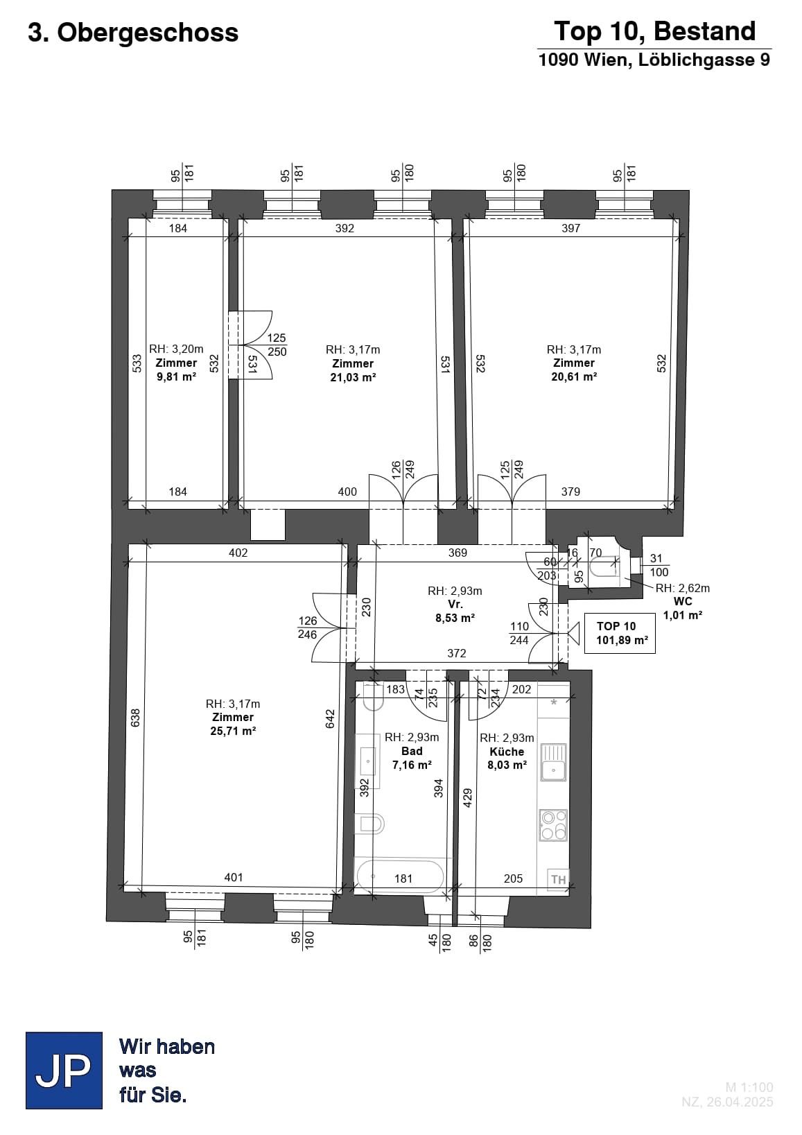 Die Wohnung befindet sich im 3. Stock und erstreckt sich über eine Fläche von ca. 102 m². Diese Wohnung vereint typischen Albaucharakter mit großzügigen Raumhöhen von über 3 m, Parkettböden, Flügeltüren und die typsichen Proportionen eines Altbaus schaffen wohnliche, angenehme Atmosphäre. Die Wohnung verfügt über 4 Zimmer, eine separate Küche, ein separates Badezimmer, ein getrenntes WC sowie einen zentralen Vorraum.