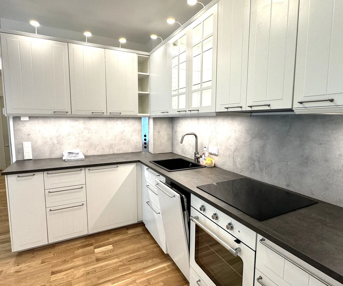 Die Wohnung war kurzzeitig bewohnt und würde inkl. der abgebildeten Möblierung übergeben werden. Die Ablöse für das auf den Fotos abgebildete Mobiliar inkl. Küche beträgt EUR 2.000,-.