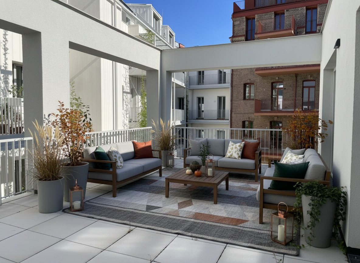 Alle vier Bautrakte bieten eine Vielzahl an Wohnungen unterschiedlicher Größe und Ausstattung, von gemütlichen Ein-Zimmer-Apartments bis hin zu geräumigen Penthouse-Wohnungen mit Terrassen und Blick auf die Stadt.