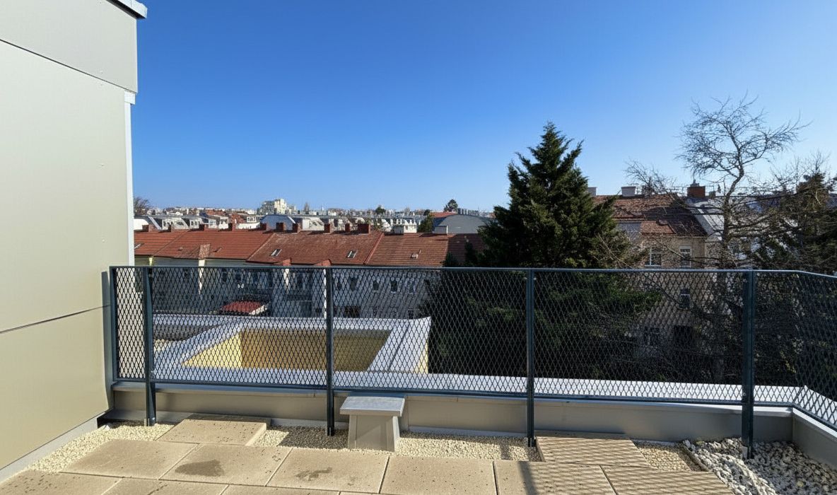 Die Freiflächen sind teilweise in den Innenhof gerichtet und teilweise zur Straßenseite, mit direkten Blick auf den Kahlenberg. Sie bieten geschützte, ruhige Rückzugsorte und schaffen private Wohlfühloasen zum Entspannen, Abschalten und Genießen.