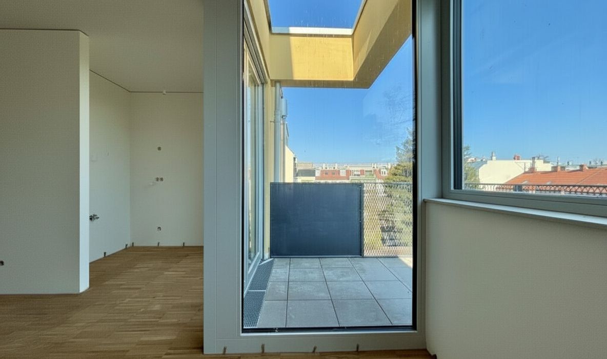 Die Freiflächen sind teilweise in den Innenhof gerichtet und teilweise zur Straßenseite, mit direkten Blick auf den Kahlenberg. Sie bieten geschützte, ruhige Rückzugsorte und schaffen private Wohlfühloasen zum Entspannen, Abschalten und Genießen.