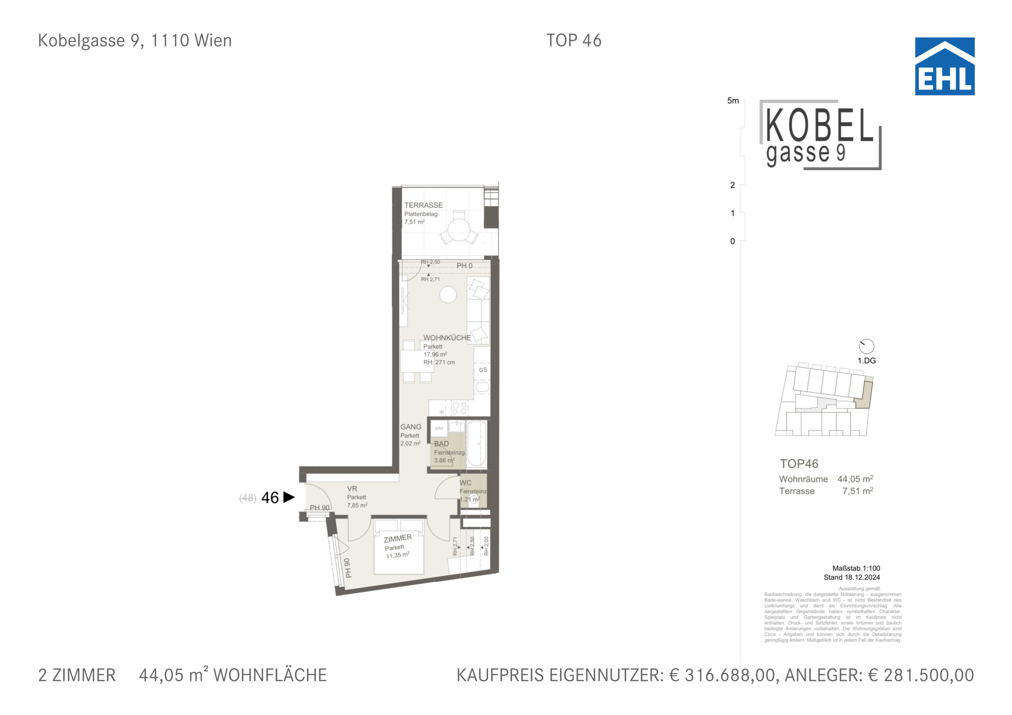 Bei diesem Angebot handelt es sich um eine Vorsorgewohnung, die zu Vermietungszwecken erworben wird. Der angegebene Kaufpreis versteht sich daher zzgl. 20% USt. Diese Daten sind vorbehaltlich möglicher Änderungen.
