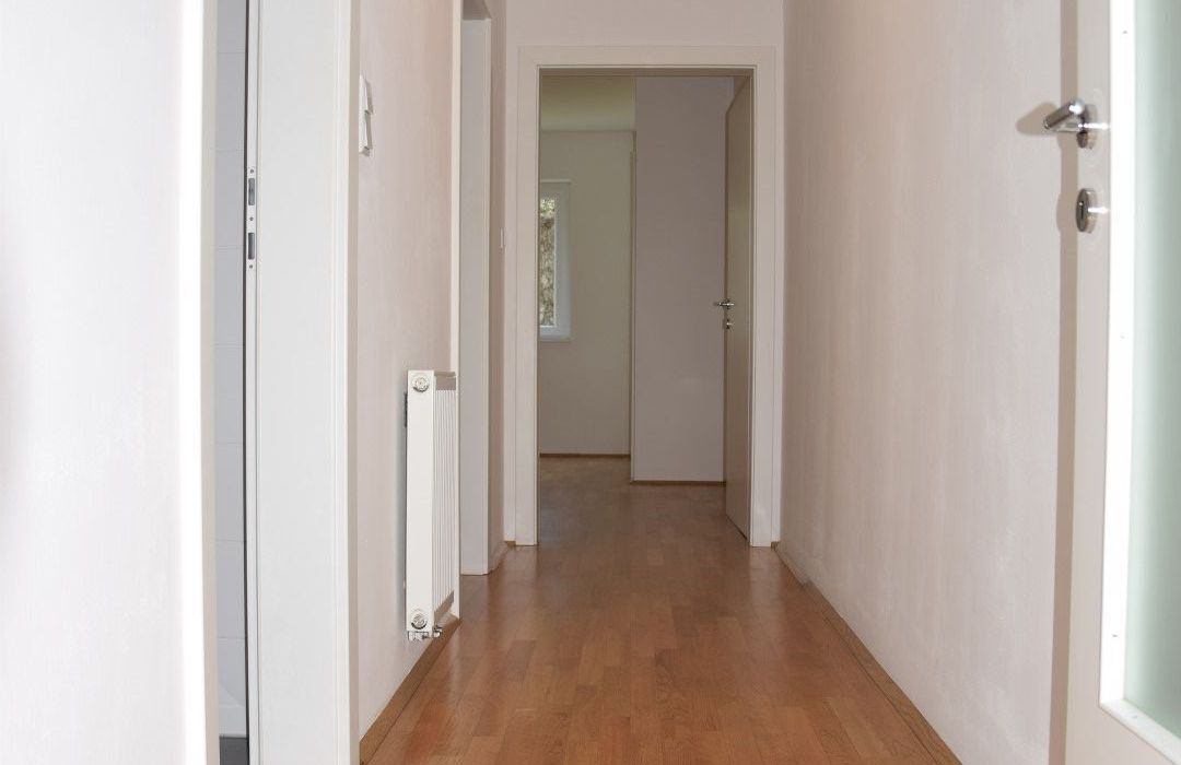 Im Erdgeschoss gelegen, stehen ein Vorraum, 2 Zimmer, ein Wohnraum mit Ausgang auf die ca. 9m² große Terrasse, ein Bad mit Wanne, Dusche und WC, ein separates WC und ein Schrankraum zur Verfügung. Ein sehr gepflegter Allgemeingarten mit Kinderspielplatz steht den Bewohnern zur Verfügung.