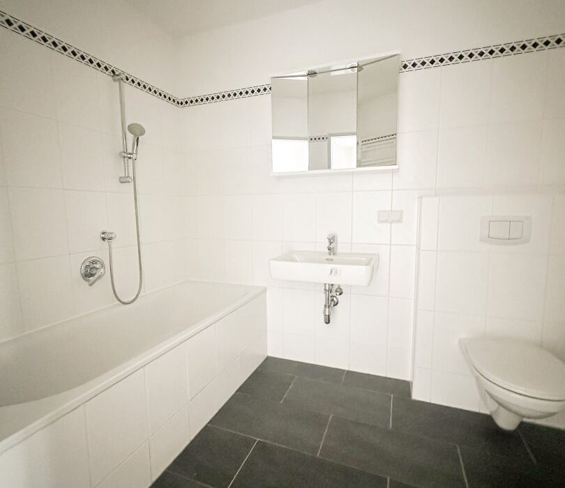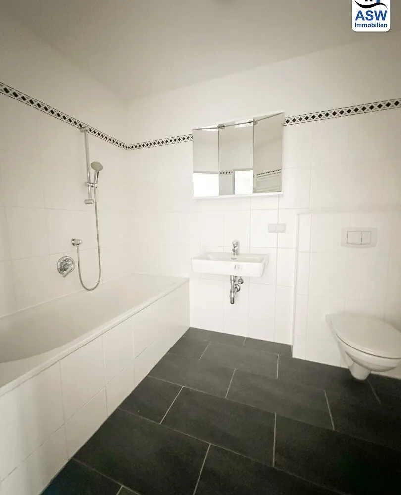 - Badezimmer mit Badewanne, Waschmaschinenanschluss und Toilette, zusätzlich ein weiteres separates WC