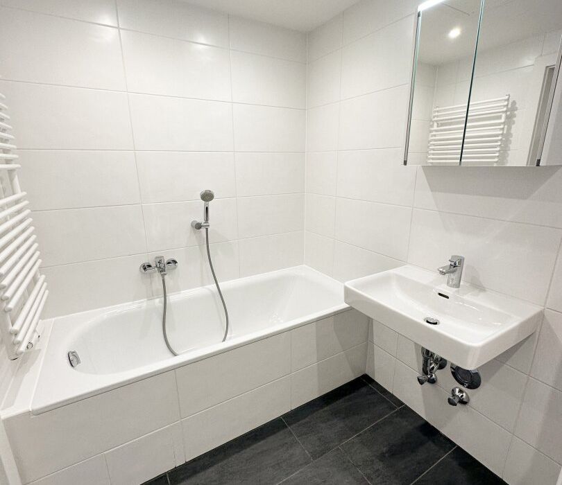 - Parkettböden, verfliestes Bad mit WC, kontrollierte Wohnraumlüftung