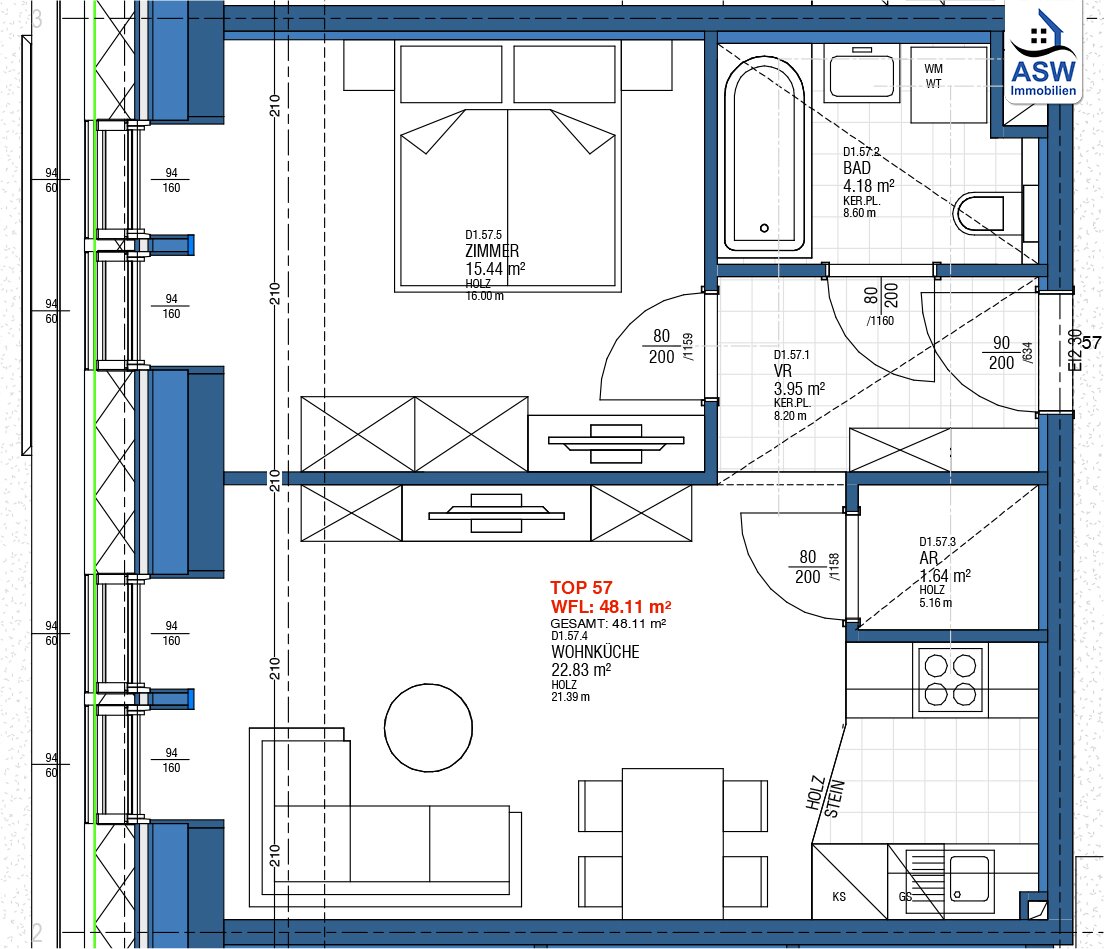 Weiters befinden sich in der Tiefgarage 31 Parkplätze. Ein Stellplatz ist verpflichtend anzukaufen (ab netto € 13.100,–)