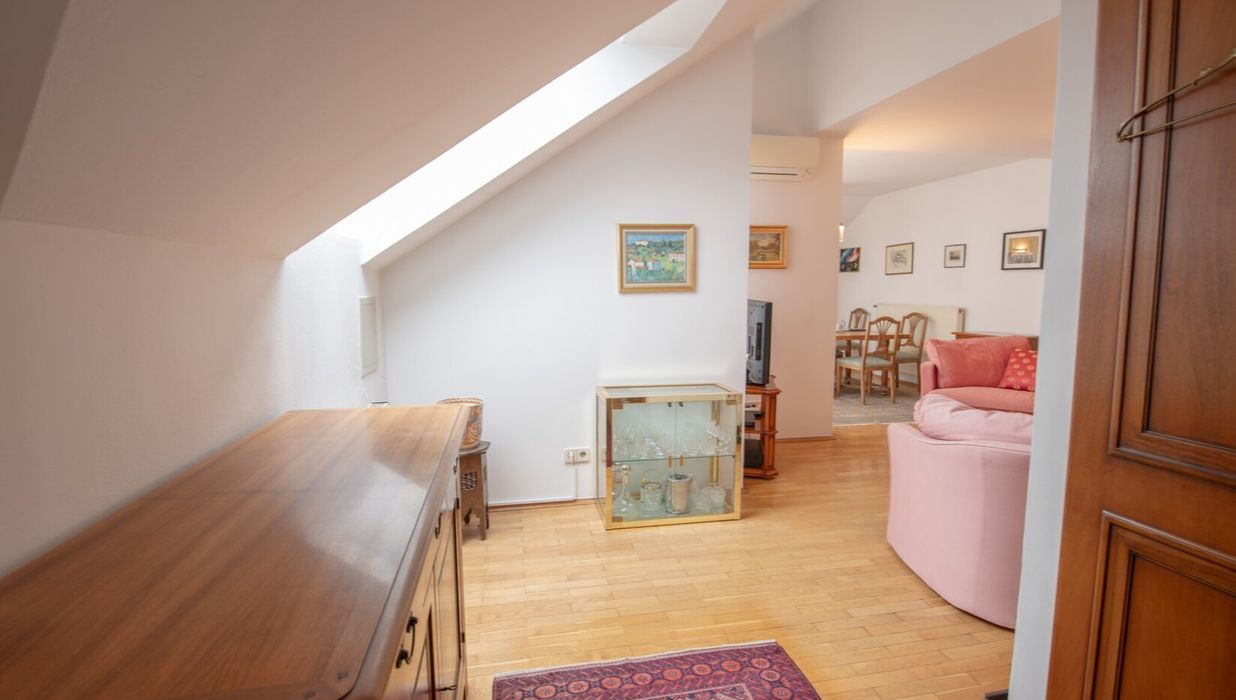 Diese attraktive Dachgeschoss-Maisonettewohnung, gelegen im 4. und 5. Stockwerk eines gepflegten Biedermeierhauses im Herzen des 6. Bezirks Mariahilf, vereint Wohnkomfort mit einem besonderen Lebensgefühl über den Dächern Wiens. Schon beim Betreten der Wohnung beeindrucken die freundlichen Räume, die Dank mehrerer Fensterflächen den ganzen Tag über von natürlichem Licht durchflutet werden. Die offene, harmonische Raumgestaltung schafft ein luftiges Wohnambiente, das viel Platz für individuelle Entfaltung bietet.