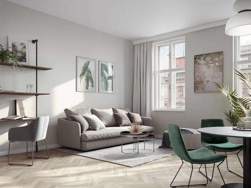 Das späthistorische Wohn- und Geschäftshaus wird unter Berücksichtigung seiner geschichtsträchtigen Vergangenheit hochwertig saniert und durch zwei Dachgeschoße und zwei Hoftrakte erweitert: Im Alt-, Neu- und Dachausbau entstehen individuelle Wohneinheiten mit attraktiven Freibereichen. Die exklusiven Altbauwohnungen im Bestand werden zeitgemäß adaptiert und mit innenhofseitigen Außenflächen ausgestattet. Die Wohnungen in den Hoftrakten und im Dachgeschoß bieten viel Raum für Neues: offene, lichtdurchflutete Wohnräume und großzügige Gärten, Loggien und Terrassen.