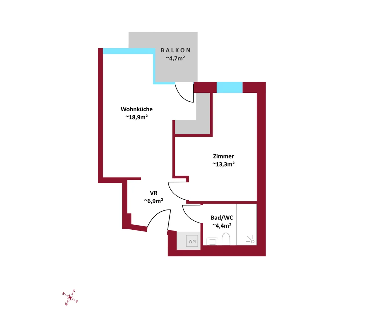 Diese moderne 43 m² Wohnung richtet sich an Menschen, die bewusst wohnen möchten. Singles oder Paare , die Wert auf Qualität und Funktionalität legen.
