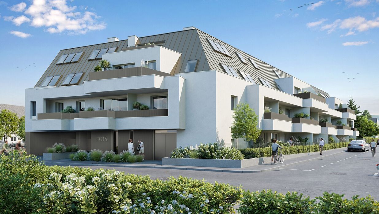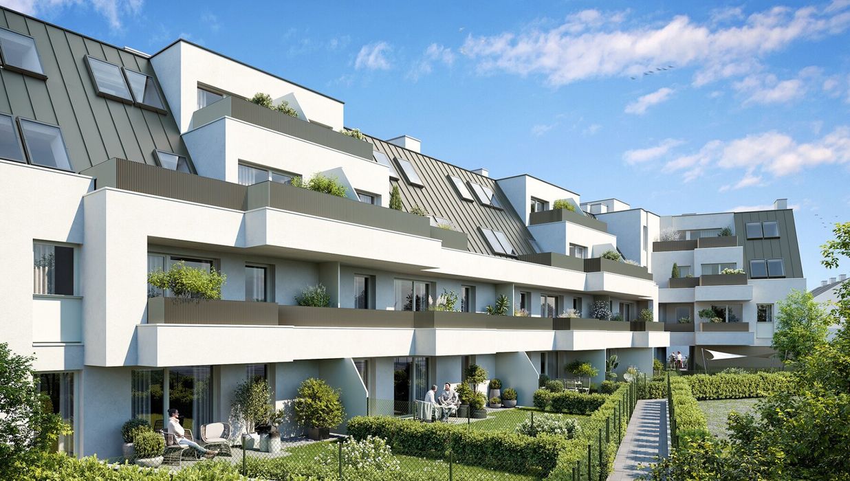 Die Wohnhausanlage besteht aus einem eleganten L-Förmigen Baukörper mit insgesamt 39 Wohnungen, allseitig ausgerichtet. Die Erschließung erfolgt über ein Stiegenhaus mit einem Aufzug, welches alle Geschosse umfasst. In der Tiefgarage sind insgesamt 19 PKW-Stellplätze untergebracht. Technik- und Einlagerungsräume sowie der Fahrradabstellraum befinden sich im Kellergeschoss. Kinderwagenabstell- und der Müllraum sind im Erdgeschoss, in unmittelbarer Nähe zum Hauptzugang, situiert. Die Wohnungen verteilen sich auf Erdgeschoss bis 2. Dachgeschoss (teilweise mit Eigengarten, Terrasse, Balkon oder Loggia).