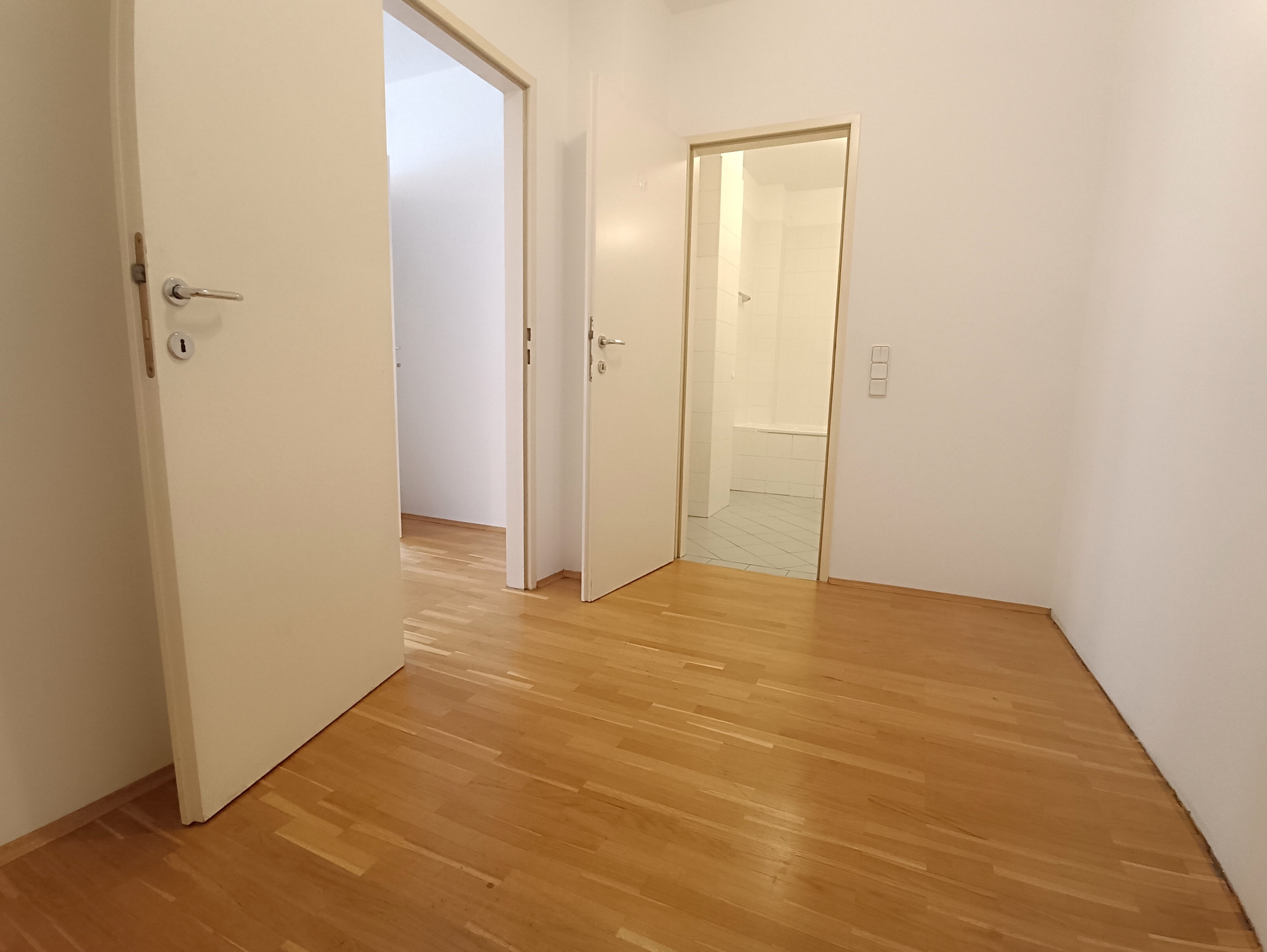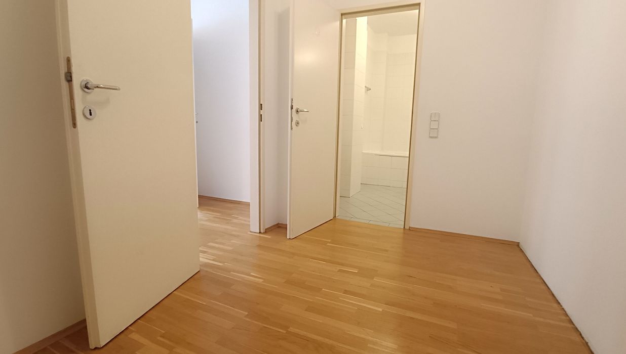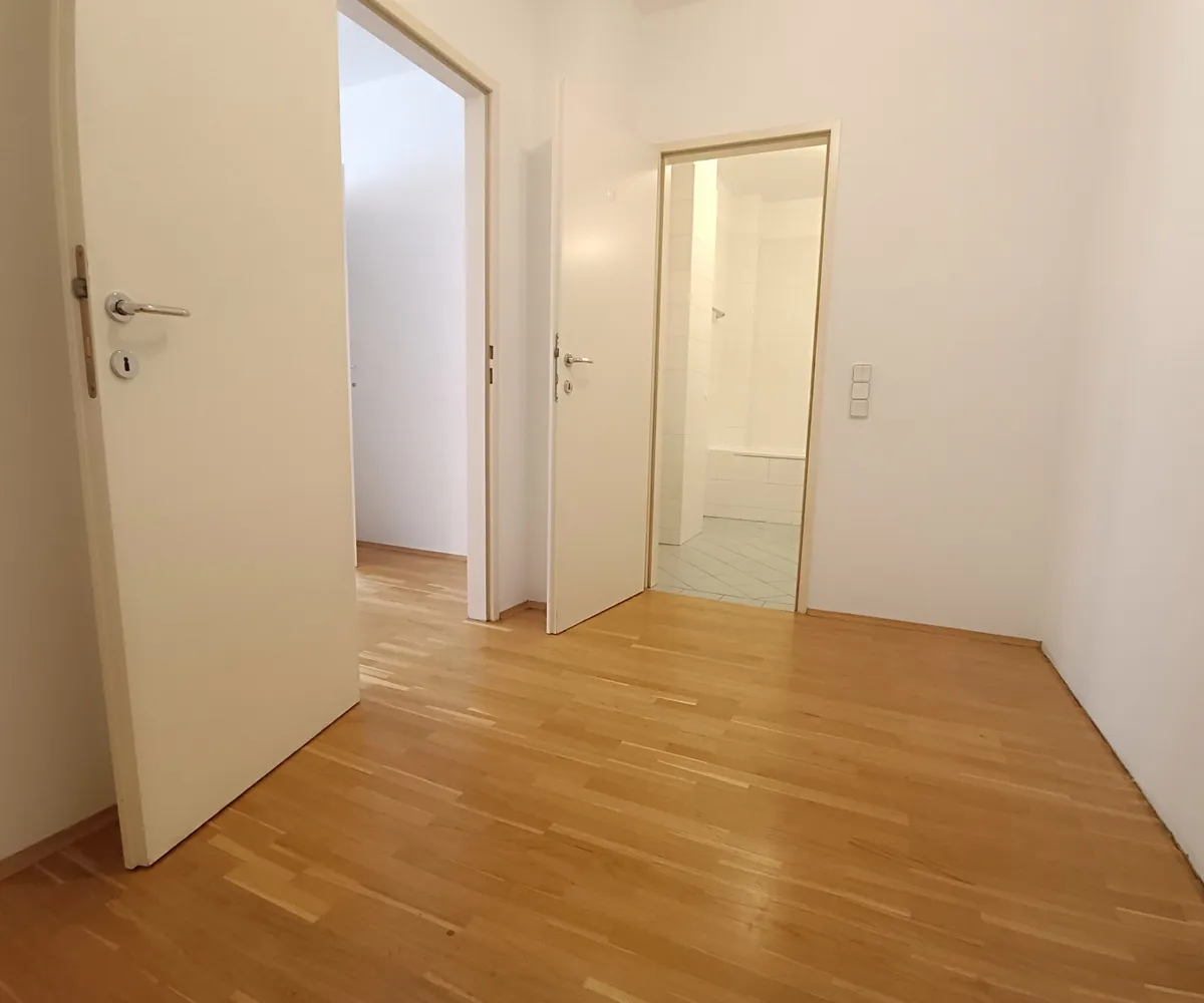 Der Vorraum bietet eine Fläche von rund 7,35 m², ausreichend Platz für einen Schrankverbau ist somit vorhanden. Ebenfalls im Vorraum befindet sich die separate Toilette mit Handwaschbecken und von hier aus erreichen Sie auch das Wohnzimmer, sowie die Küche.
