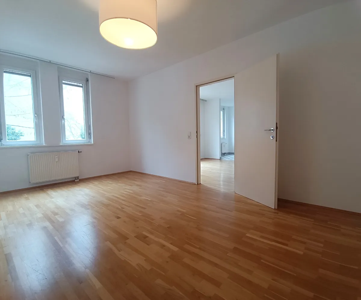 Das Wohnzimmer kann direkt von der Küche oder vom Vorraum aus betreten werden und auch hier erwartet Sie ein großzügiges Raumangebot, welches viel Platz für die persönliche Einrichtung und Gestaltung bietet.