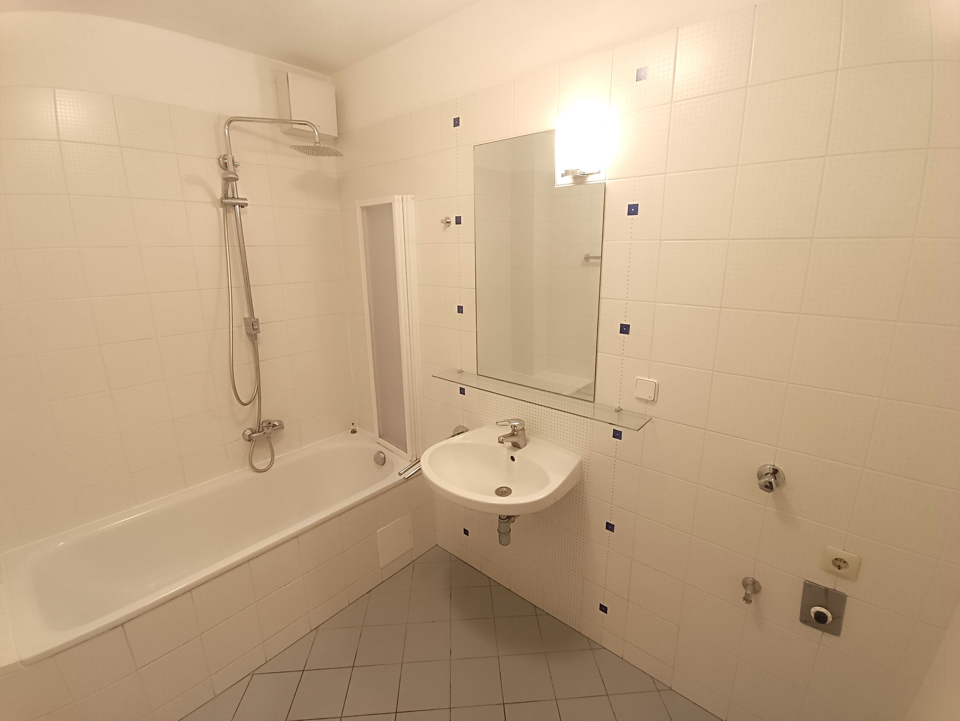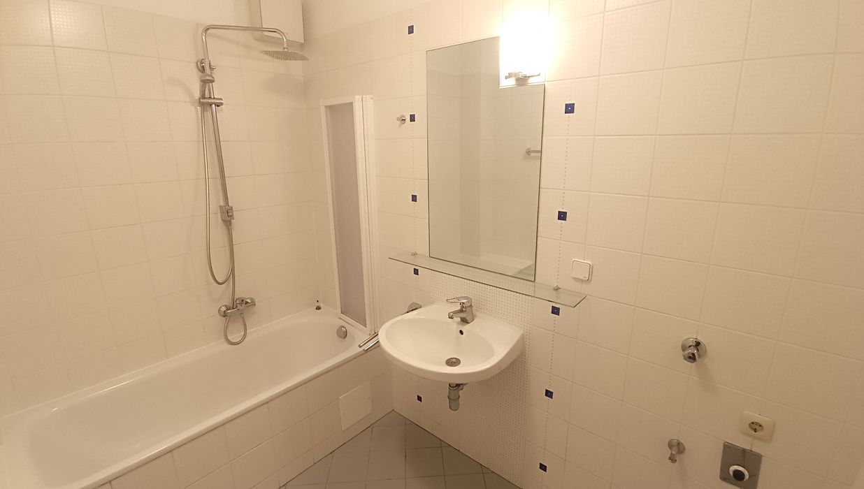 - Badezimmer mit Badewanne und Duschtrennwand