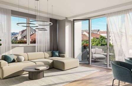 In einer verkehrsberuhigten Sackgasse und direkt am Arik-Brauer-Park gelegen entstehen 150 hochwertige Eigentumswohnungen mit Wohnflächen von ca. 30 m² bis 130 m², die für unterschiedlichste Lebensbedürfnisse und Wohnkonzepte ausgelegt sind. Die Wohnungen bieten attraktive Extras wie private Gärten, Balkone, Loggien und eine beeindruckende Panorama-Terrasse, die einen atemberaubenden 360° Panoramablick über Wien eröffnet. Mit großzügigen Raumhöhen schaffen wir ein offenes und luftiges Wohngefühl. Darüber hinaus stehen Tiefgaragenstellplätze zur Verfügung und moderne Energiekonzepte, wie Photovoltaik und Fernwärme, garantieren eine nachhaltige und effiziente Energieversorgung. Hier wohnen Sie stilvoll, zukunftsorientiert und überaus komfortabel.