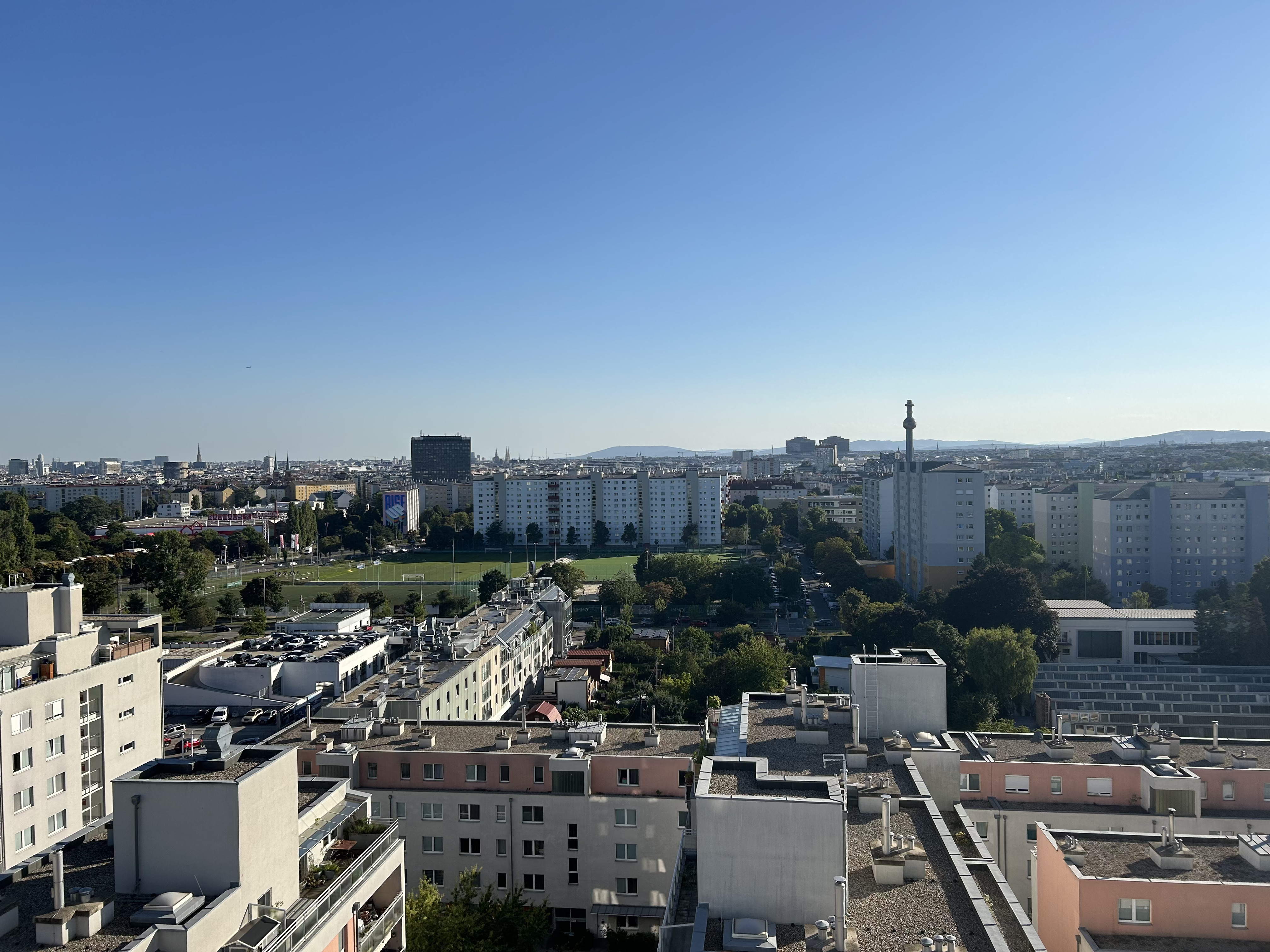 Ein besonderes Highlight ist der beeindruckende Weitblick aus der 13. Etage. Ob bei Sonnenaufgang oder abends bei Blick über die Lichter der Stadt – diese Aussicht verleiht dem Zuhause eine besondere Atmosphäre.