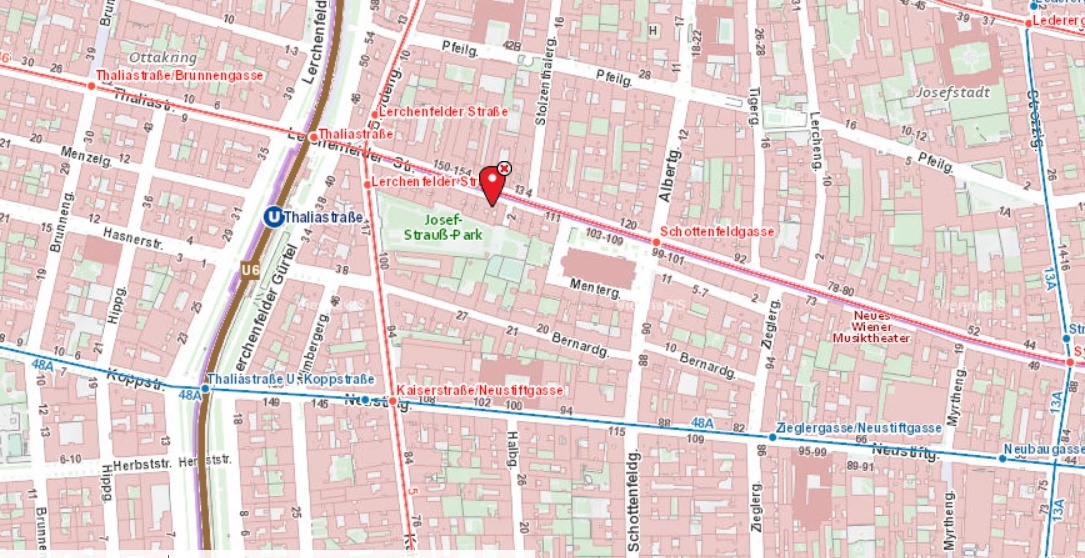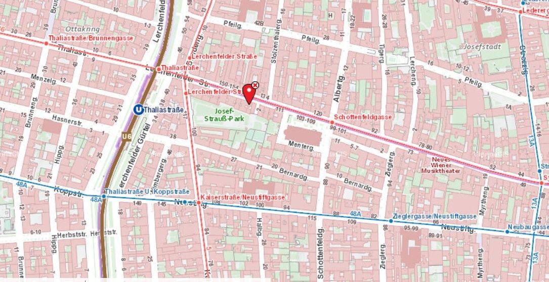 Die Lage ist ausgezeichnet - in wenigen Gehminuten sind die U6 Station Thaliastrasse erreichbar sowie die Strasssenbahnlinie 46. Die Einkaufsmöglichkeiten für den täglichen Bedarf sind praktisch vor der Haustüre vorzufinden!