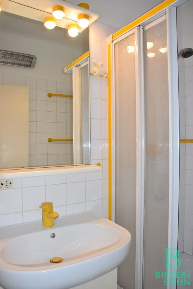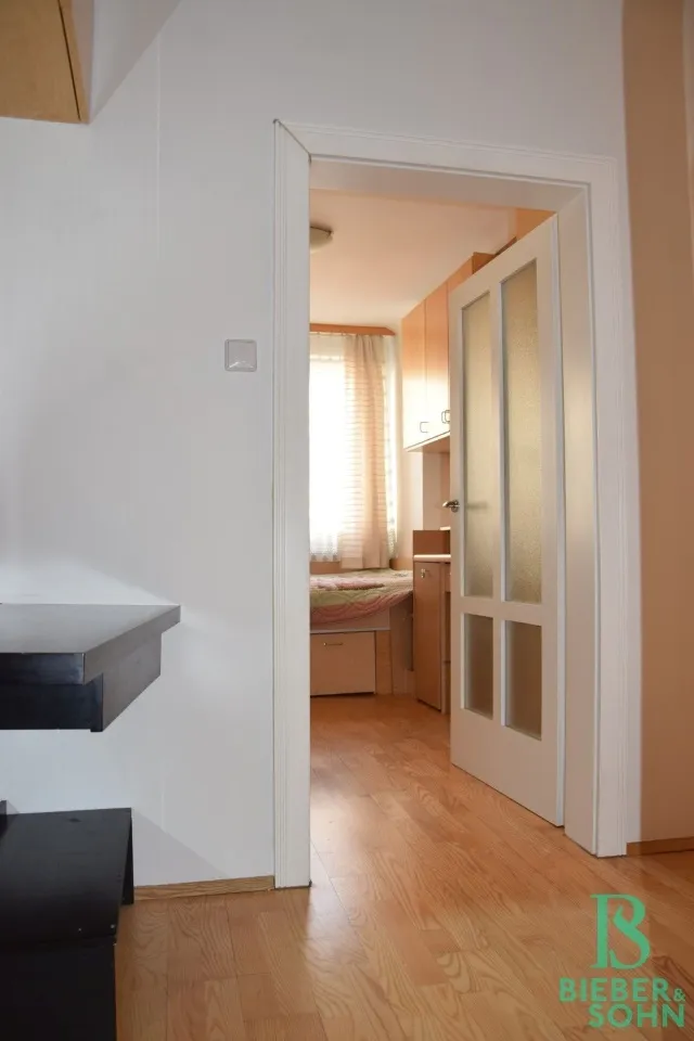 Die Ausstattung umfaßt neben Parkettböden in den Räumen perfekt durchdachte Tischlereinbauten im Vorraum mit Garderobe und genügend Stauraum. Das Schlafzimmer mit Einbauschränken und Schreibtischverbau bietet ebenso reichlich Platz! Das helle Wohnzimmer lädt zum Verweilen ein! Im Bad sind eine Dusche, Waschtisch und Waschmaschine vorhanden. Gegensprechanlage, Kabel-/Telefonanschluß, 3-fach-Isolierglasfenster mit Aussenrollos.
