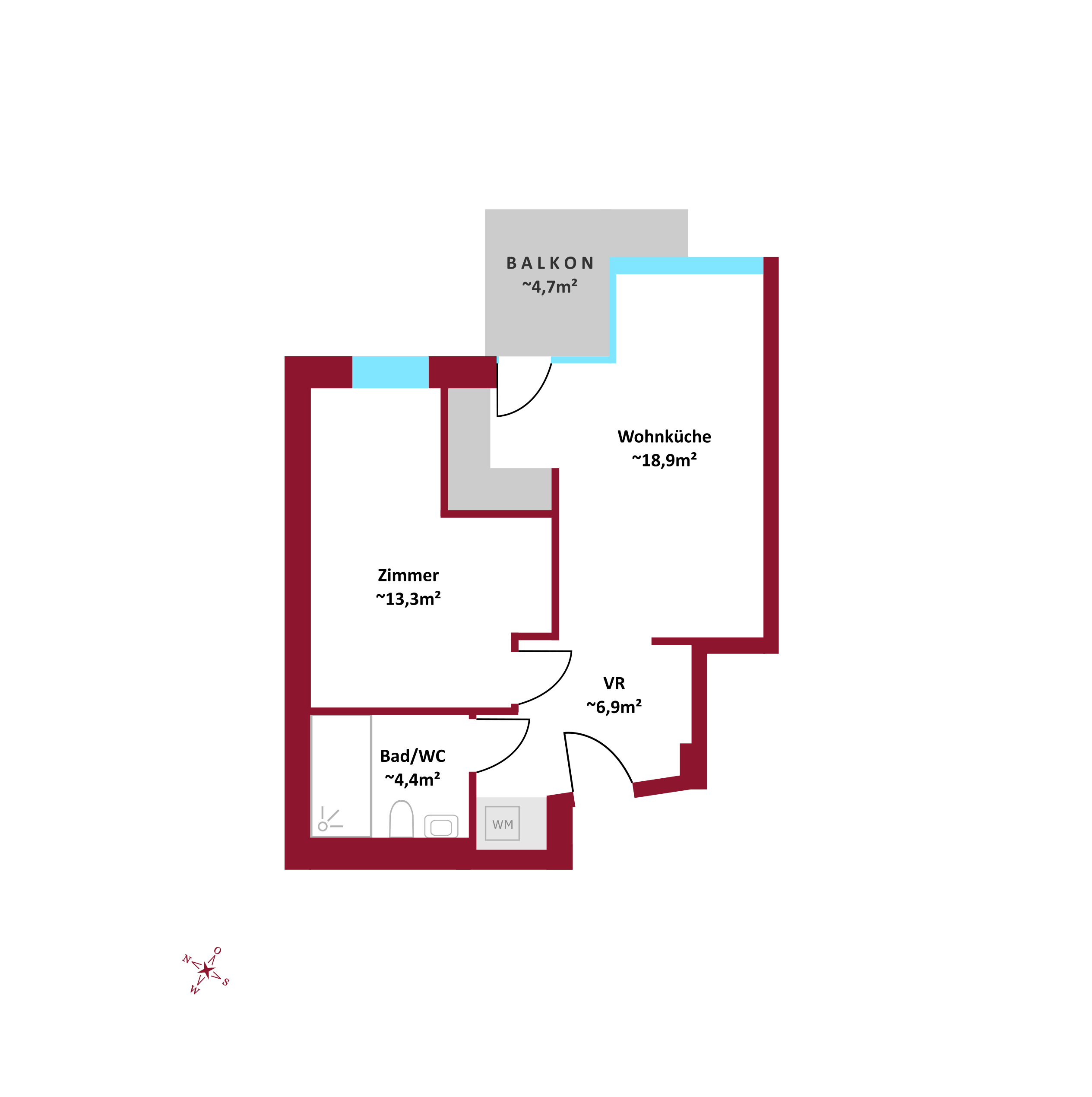 TOP 7 | 43 m² | 2 Zimmer | Balkon in den ruhigen Innenhof | GRÜNBLICK